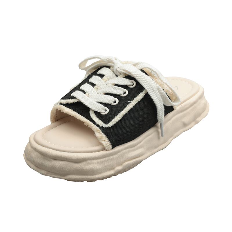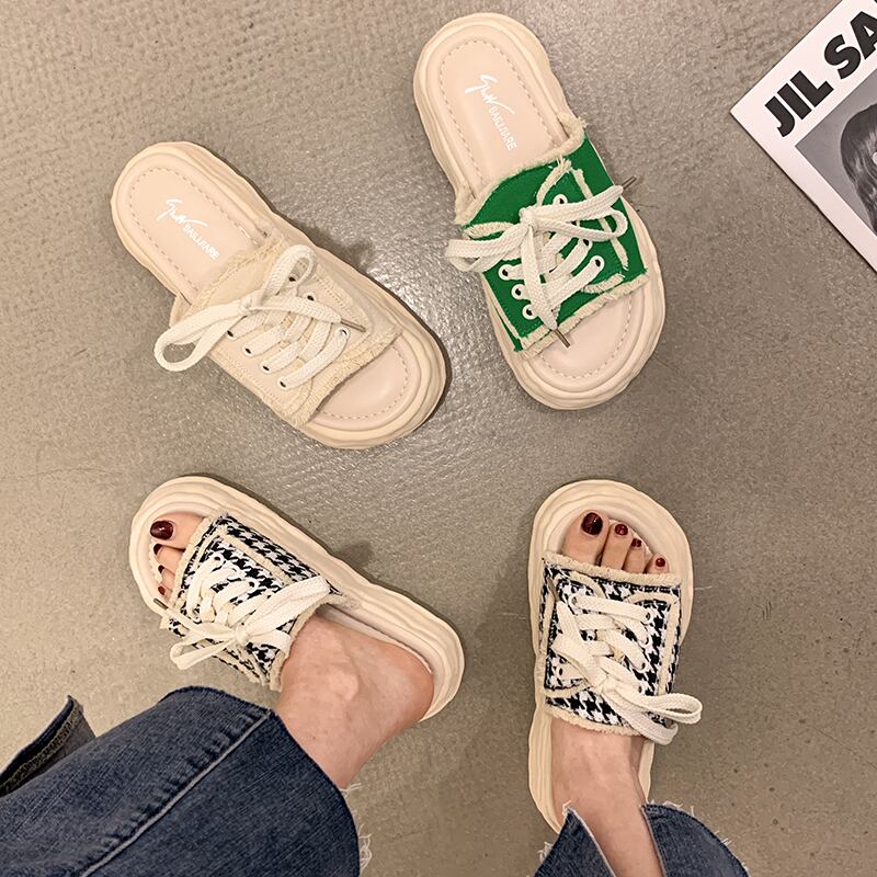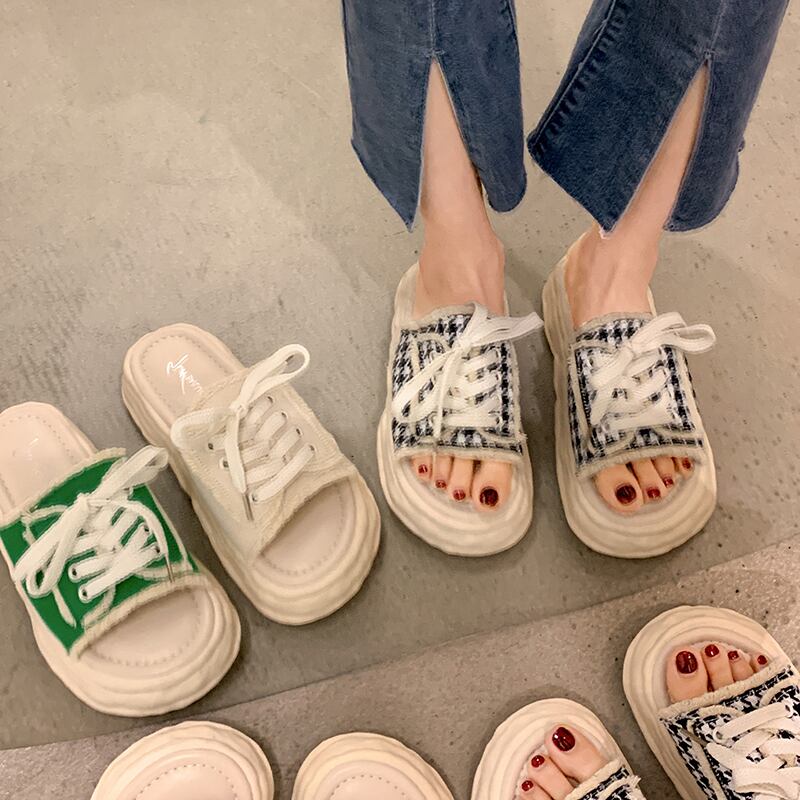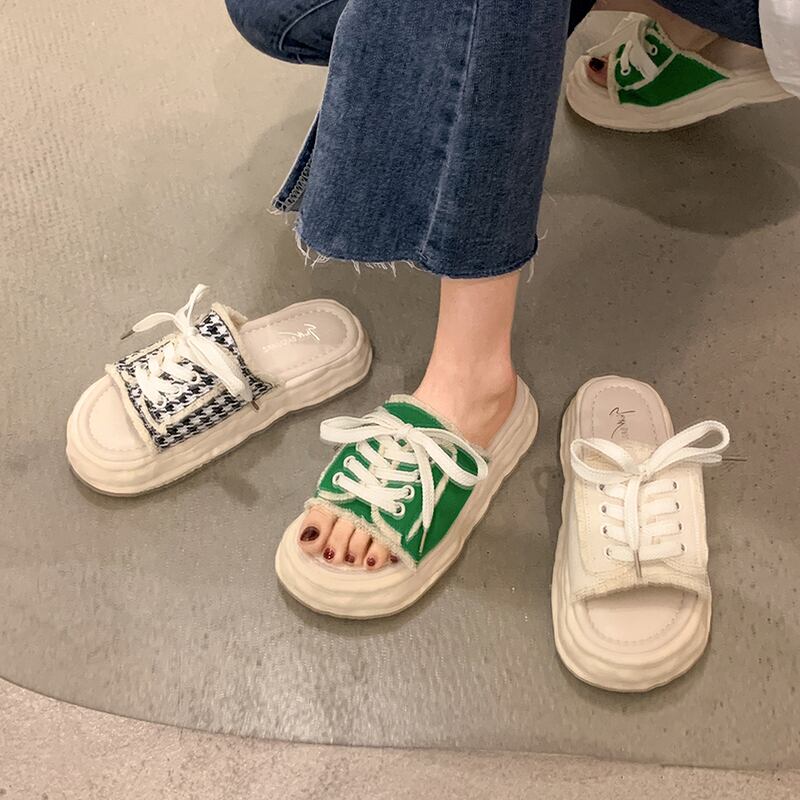 サンダルとスリッパの女性の2022年夏の新しいキャンバスレースアップ厚底滑り止めネットレッドファッションオールマッチカジュアルフリップフロップ ミュール 靴 シューズ サマー 夏物 jxjxf36760037760