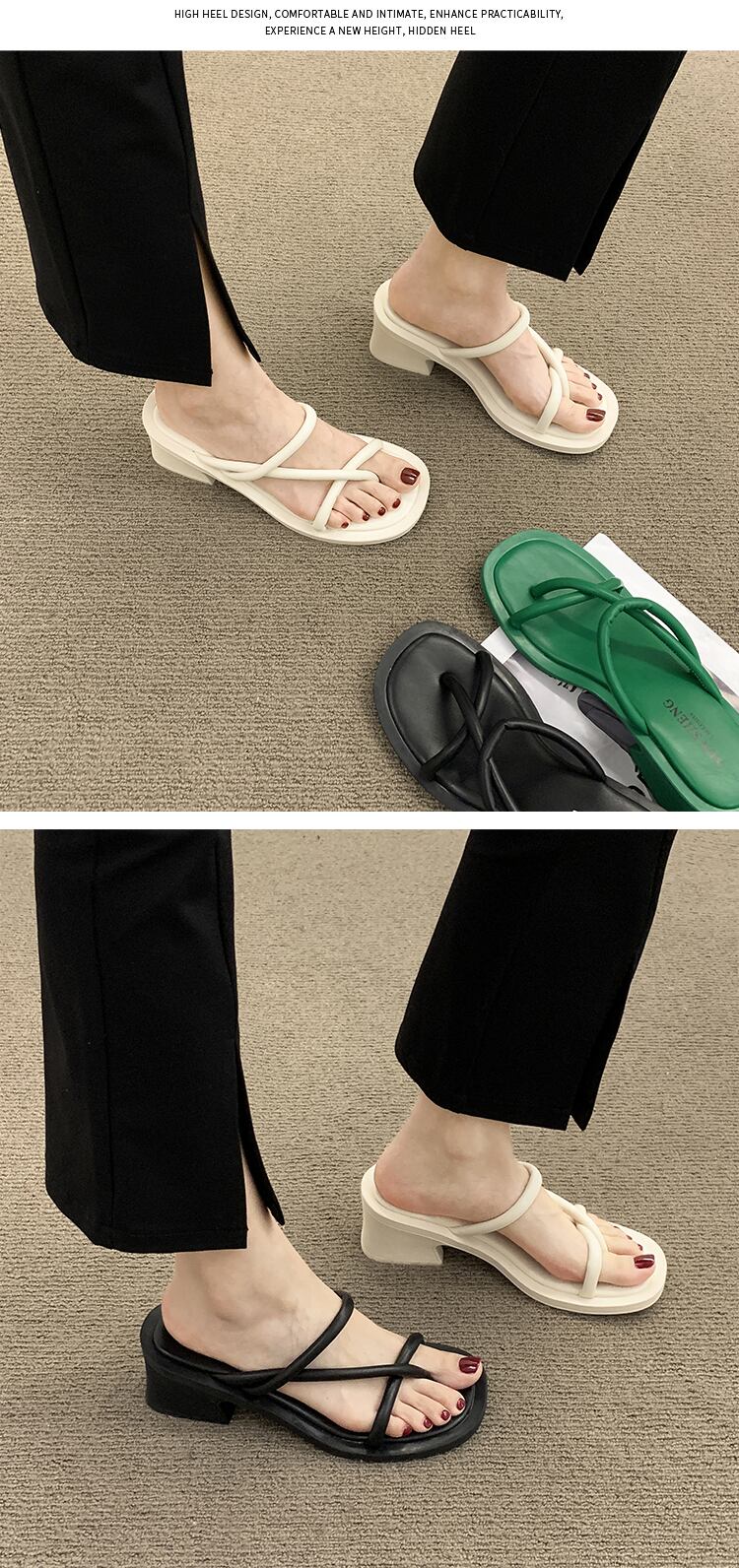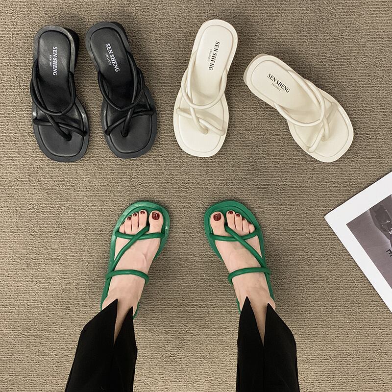 セットトゥスリッパレディースサマーウェア2022新しいファッションオールマッチ小さな厚いヒール滑り止めレトロサンダルとスリッパタイド 靴 シューズ ミュール 夏物 jxjxf60845604978