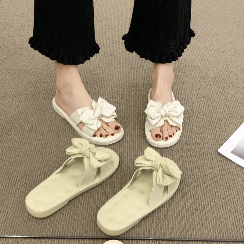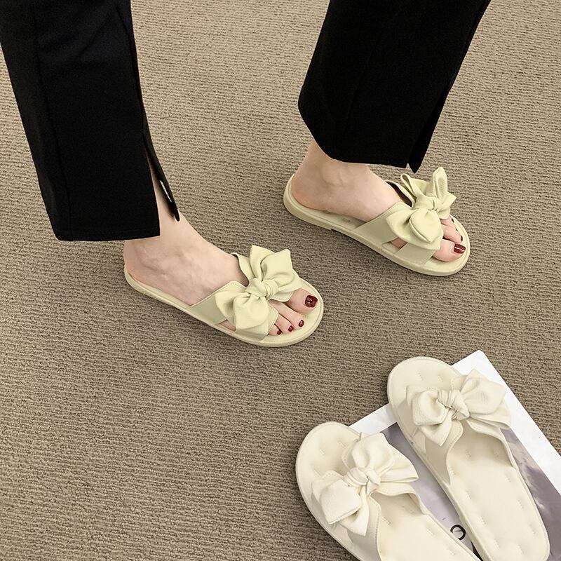アウターウェアスリッパレディース2022年夏の新作ファッションオールマッチ優しいリボンフラットボトム滑り止め一言サンダルとスリッパ ミュール 靴 シューズ サマー 夏物 スリッポン jxjxf17727328372