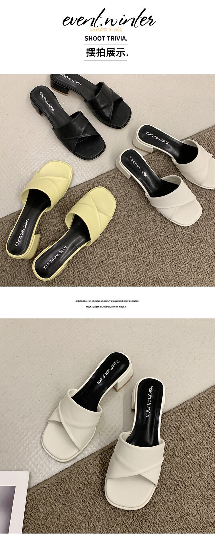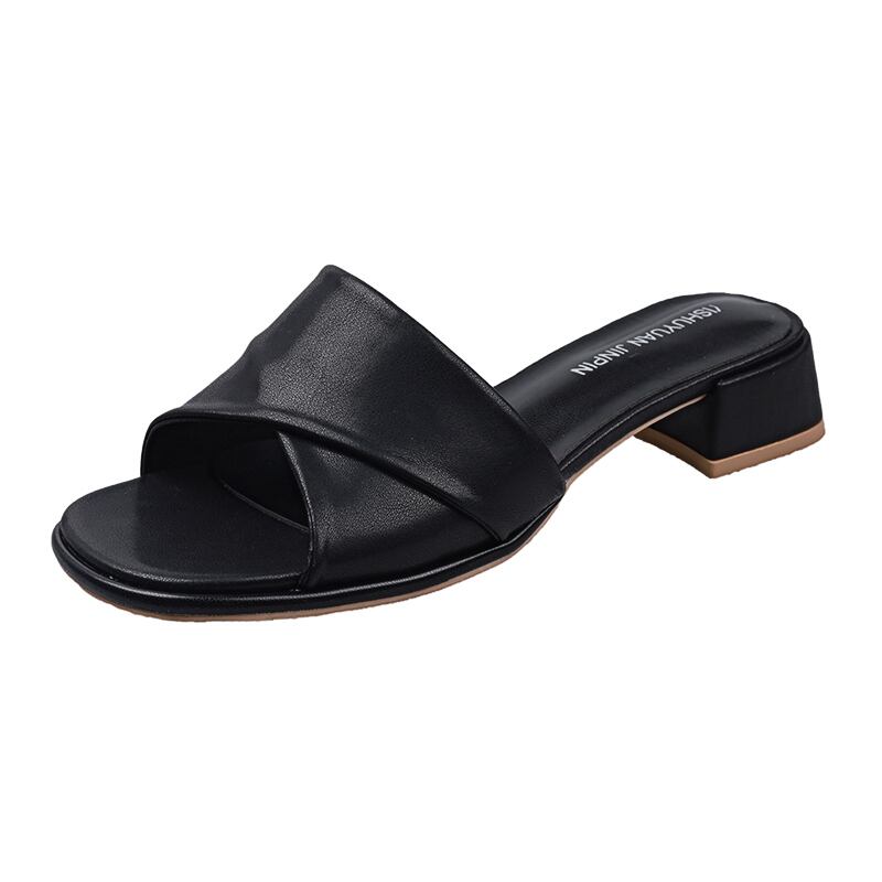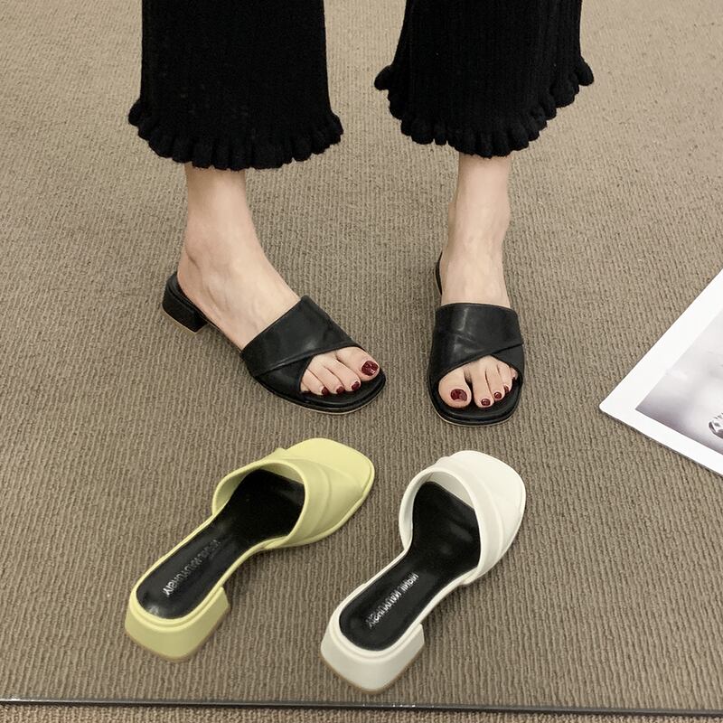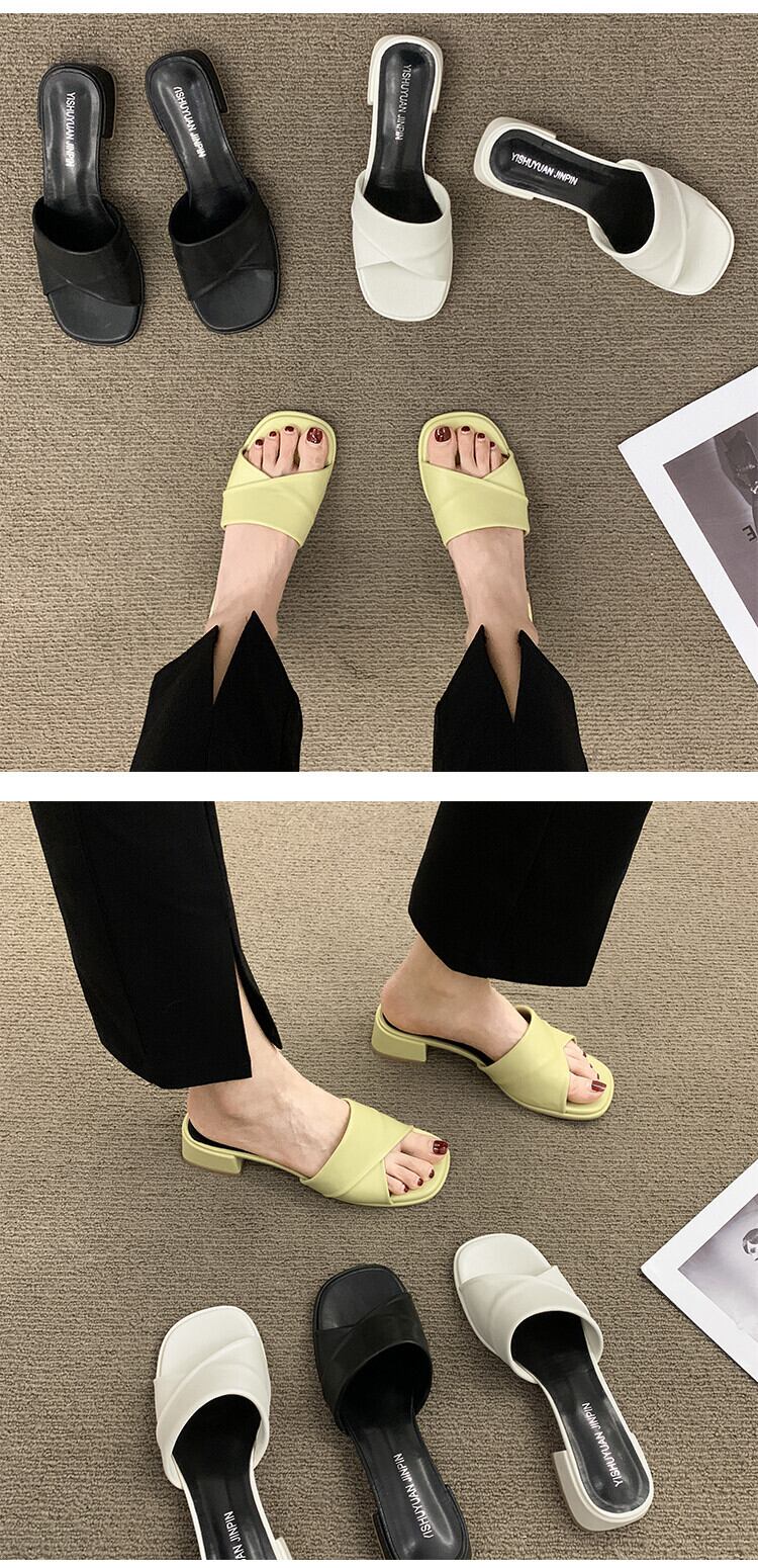 夏のスリッパの女性のファッションウェア2022新しい厚いかかと滑り止めネット赤オールマッチ穏やかな単語ドラッグイン潮 レッド ヒール 靴 シューズ ミュール サマー 夏物 jxjxf79826114790