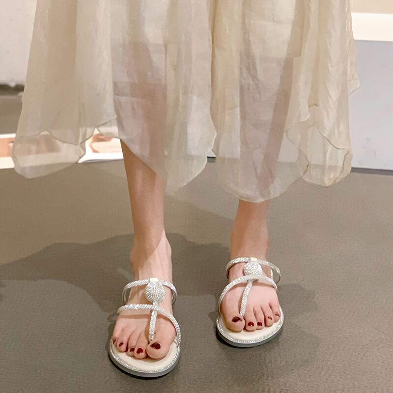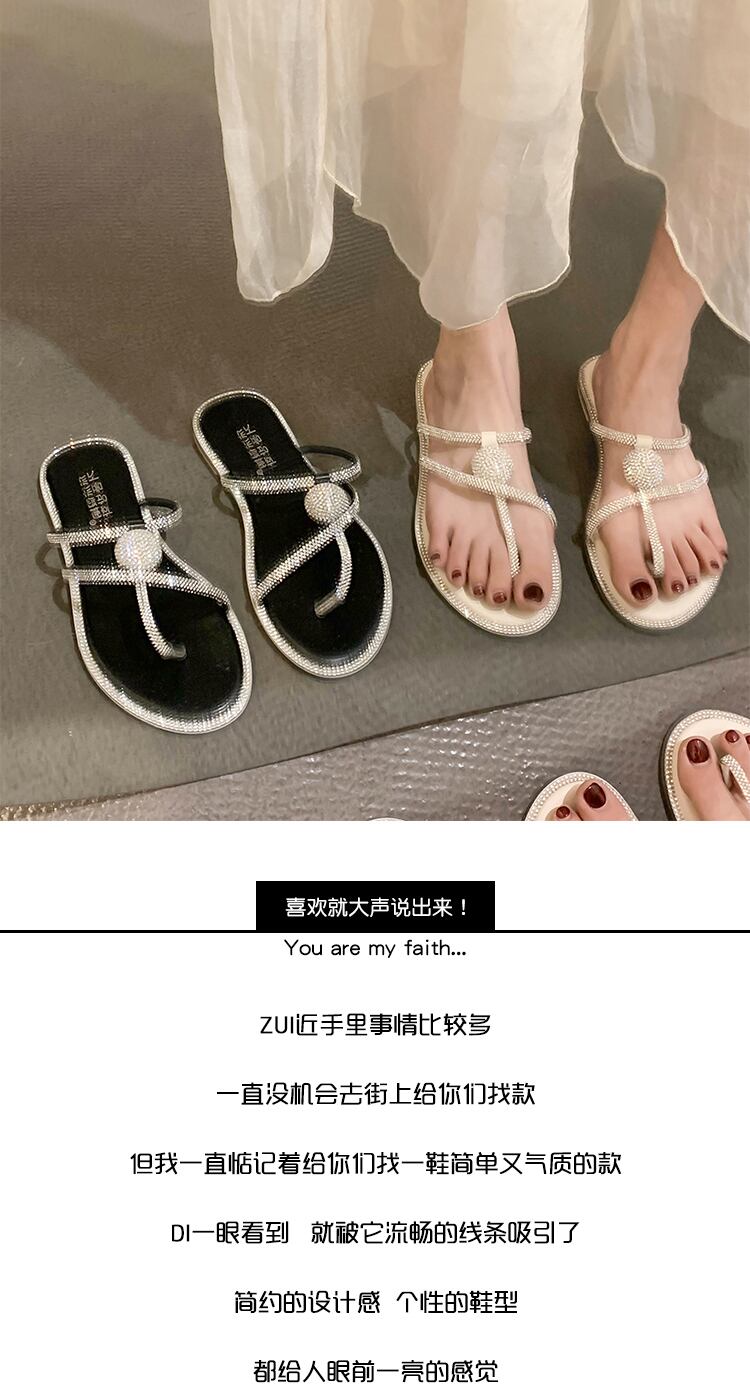 アウターウェアビーチサンダル女性2022年夏の新しいラインストーンフラットボトム滑り止めファッションオールマッチフェアリースタイルレトロスリッパ ミュール 靴 シューズ サマー 夏物 jxjxf38110431799