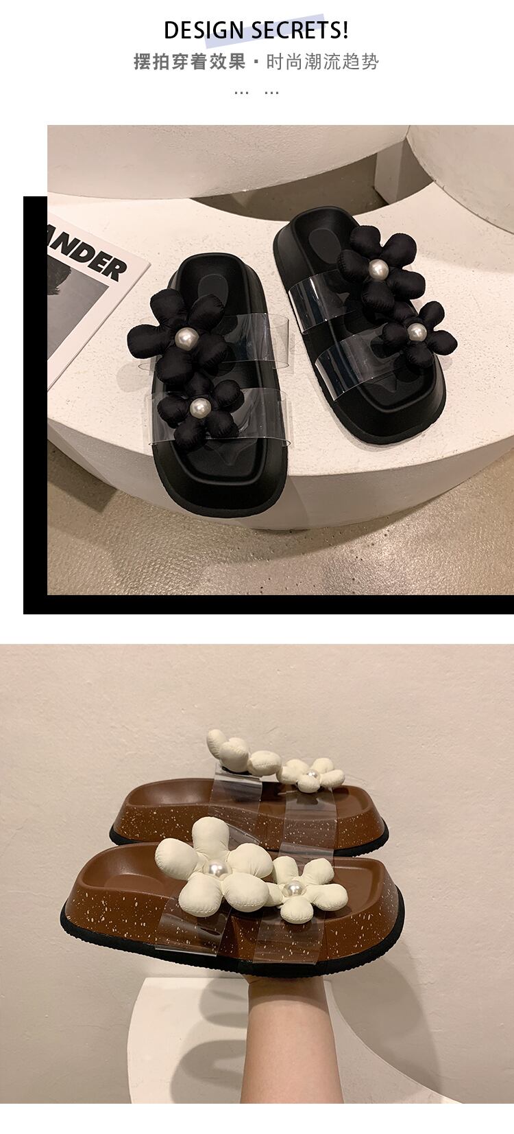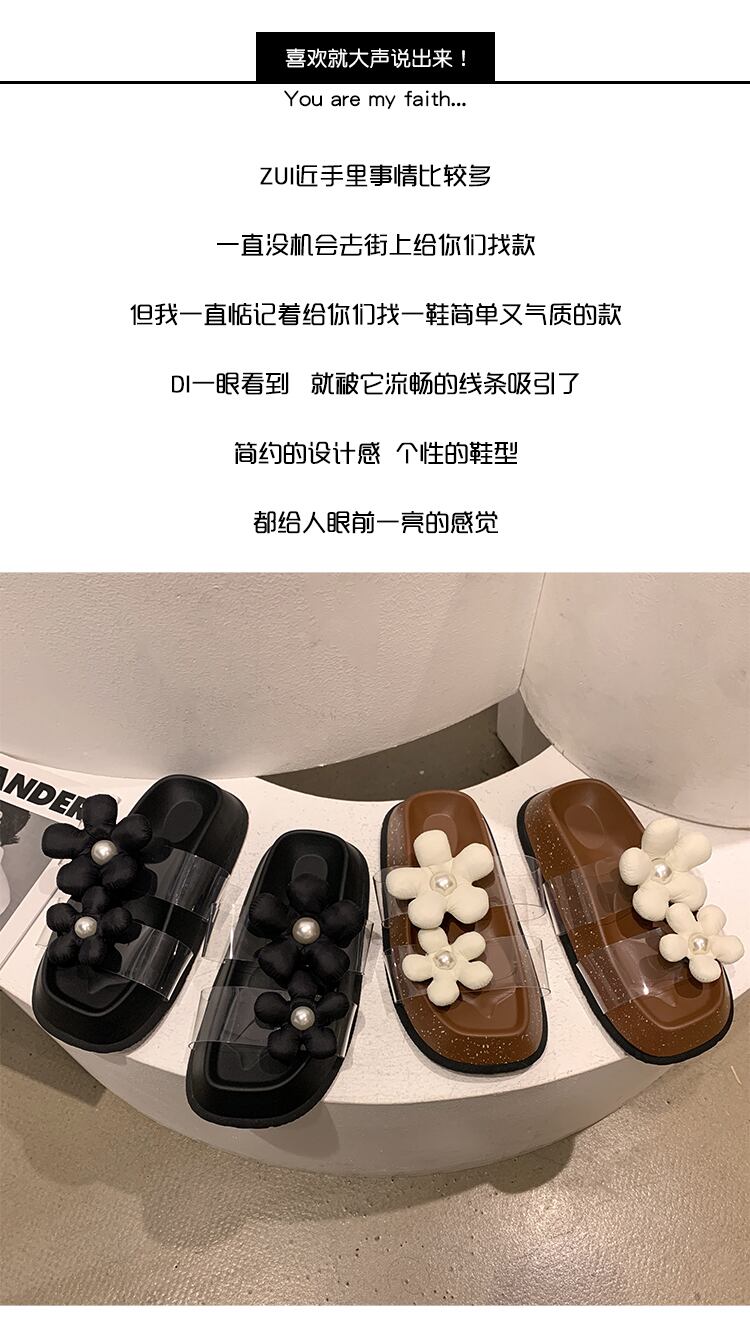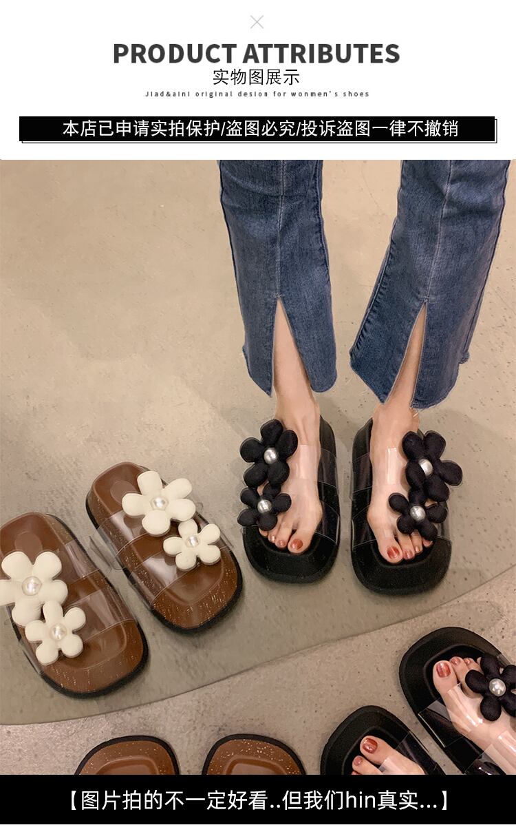 JiaBuフェイクスリッパレディース2022夏ニューパールフラワー厚底滑り止めファッションオールマッチサンダルとスリッパ ミュール 靴 シューズ サマー 夏物 真珠 フラワーデザイン jxjxf93990659006