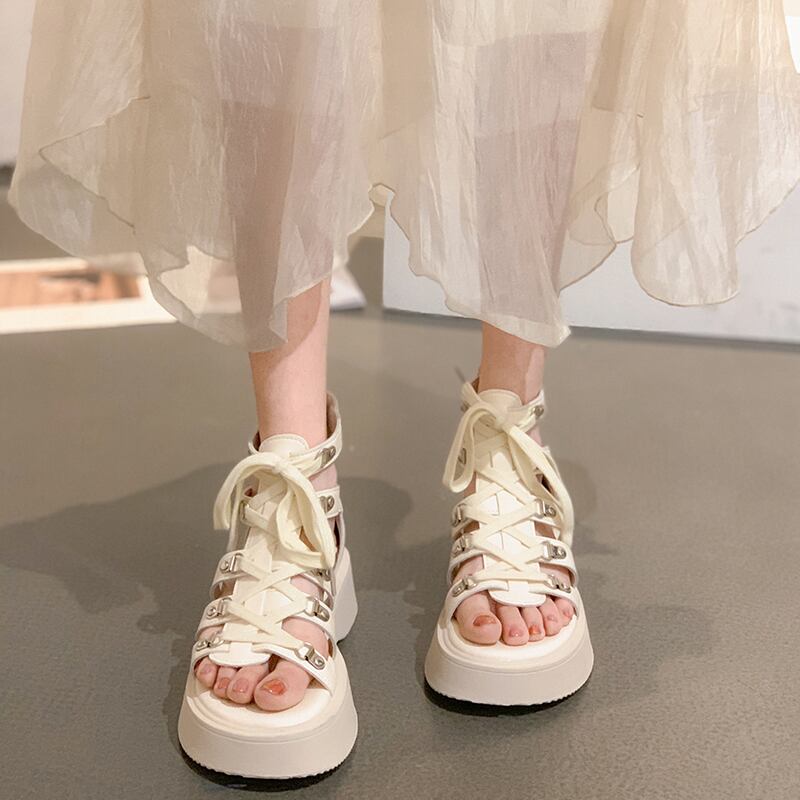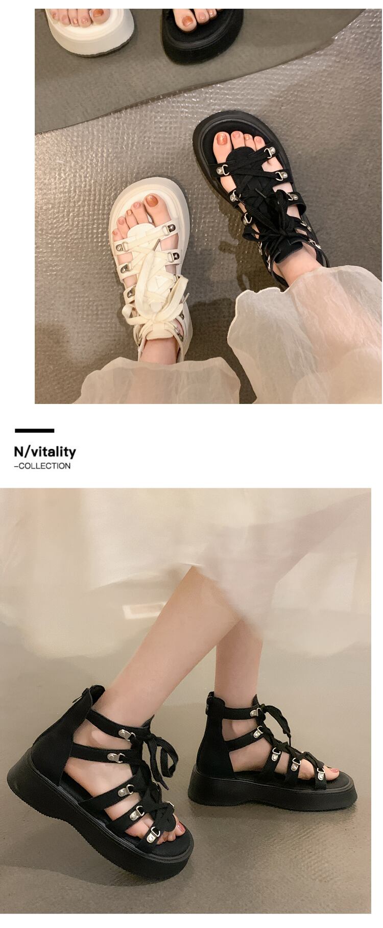 サンダルレディース2022年夏の新しいスーパーファッションオールマッチレトロスモールマフィン厚底滑り止めローマ靴 シューズ サマー 夏物 jxjxf12339925061