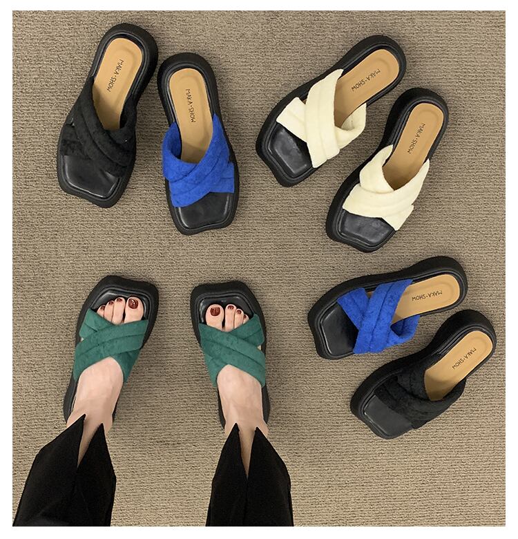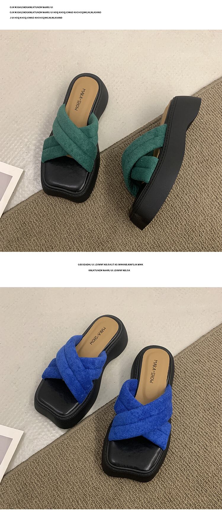 サンダルとスリッパ女性の夏のアウターウェア2022新しいクロス厚い底滑り止めファッションオールマッチレトロ一言ドラッグインタイド ミュール 靴 シューズ サマー 夏物 jxjxf9207129916