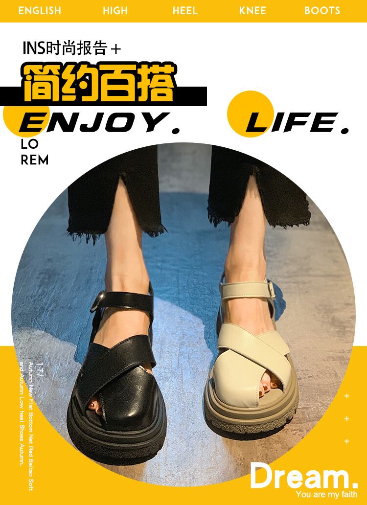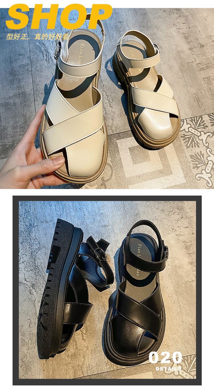 包頭サンダルレディース2022夏の新しいスーパーファッションオールマッチレトロベルクロ厚手のヒール滑り止めローマの靴 シューズ サマー 夏物 jxjxf68227128485