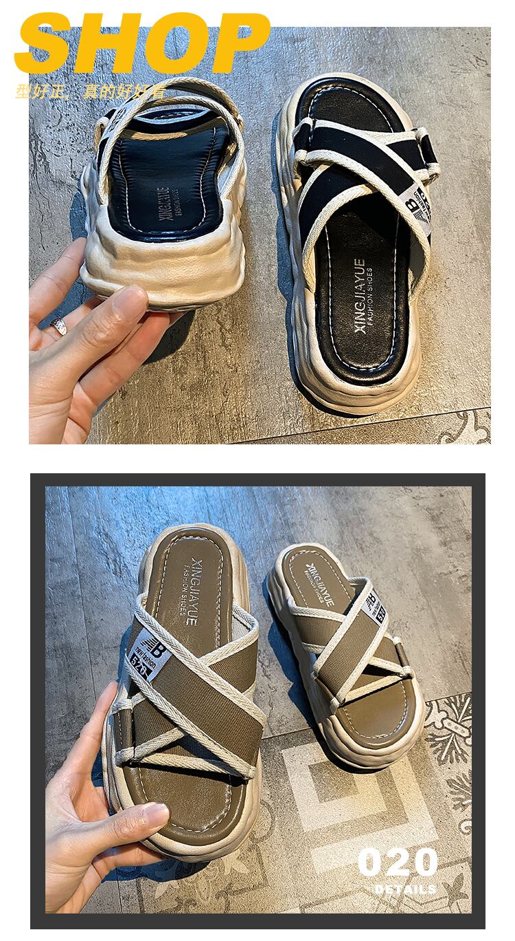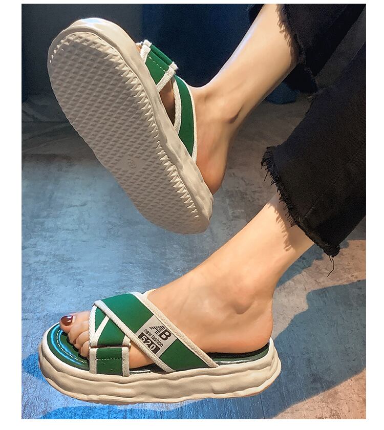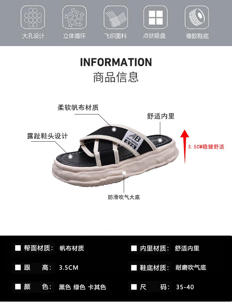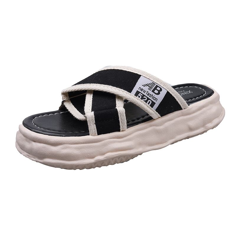 スリッパを履いている女性2022年夏新しいファッションオールマッチ小さな厚い底滑り止めディゾルブキャンバスサンダルとスリッパ ミュール 靴 シューズ サマー 夏物 jxjxf84381361416