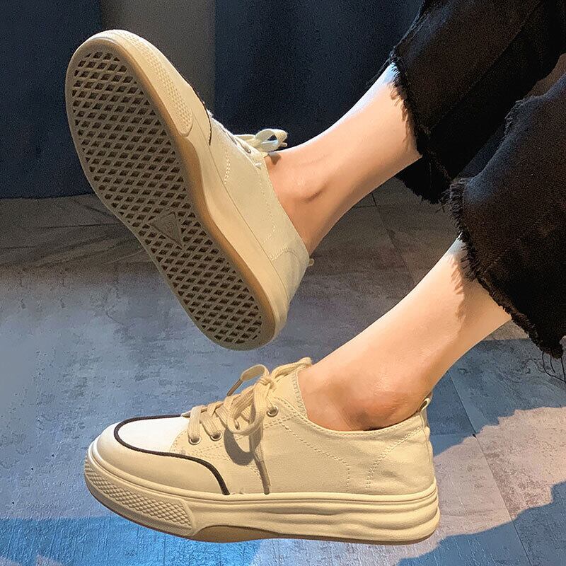 カジュアルシューズレディース2022年春新しい通気性のある丸いつま先の厚い底滑り止めオールマッチストリートトレンドキャンバスシューズ 靴 スプリング 春物 ラウンドトー jxjxf67575128175