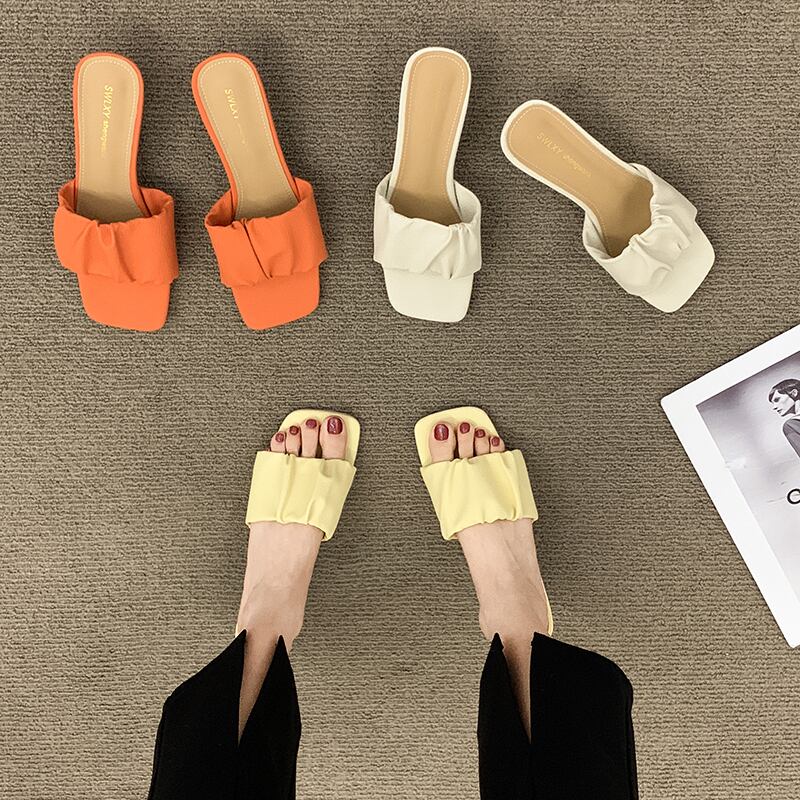 女性の2022年夏の外のスリッパ新しいファインヒールネットレッドファッションオールマッチフレンチレトロワンワードドラッグインタイド ミュール 靴 シューズ サマー 夏物 jxjxf62073858412