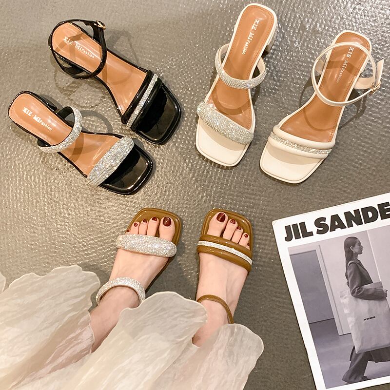 つま先の開いたサンダルレディーススカート2022年夏の新しいラインストーンの厚いヒール滑り止めのファッションオールマッチの妖精スタイルのローマの靴 シューズ サマー 夏物 jxjxf78188563192