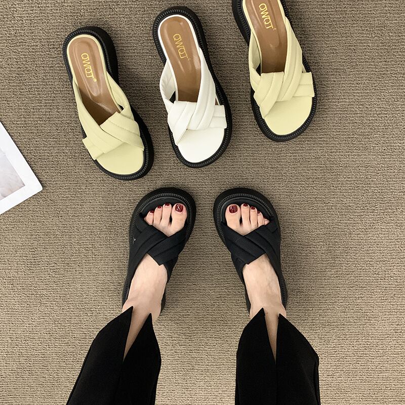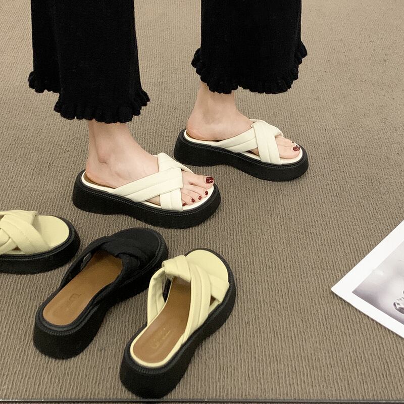 一言フリップフロップ女性の2022年夏の新しい厚い底滑り止めネット赤スーパーオールマッチ小さなレトロスリッパ レッド ミュール 靴 シューズ サマー 夏物 jxjxf75356339364