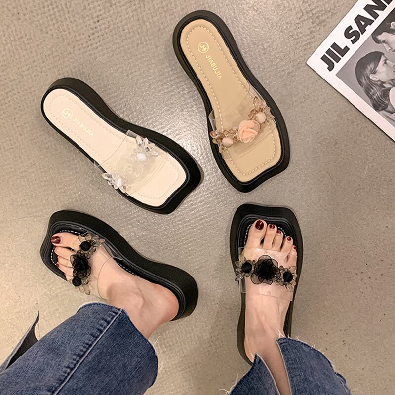 サンダルとスリッパの女性の夏の服2022新しいネット赤スーパーファッションレトロな花厚い底滑り止めワードドラッグタイド レッド ミュール 靴 シューズ サマー 夏物 フラワーデザイン jxjxf45619485671