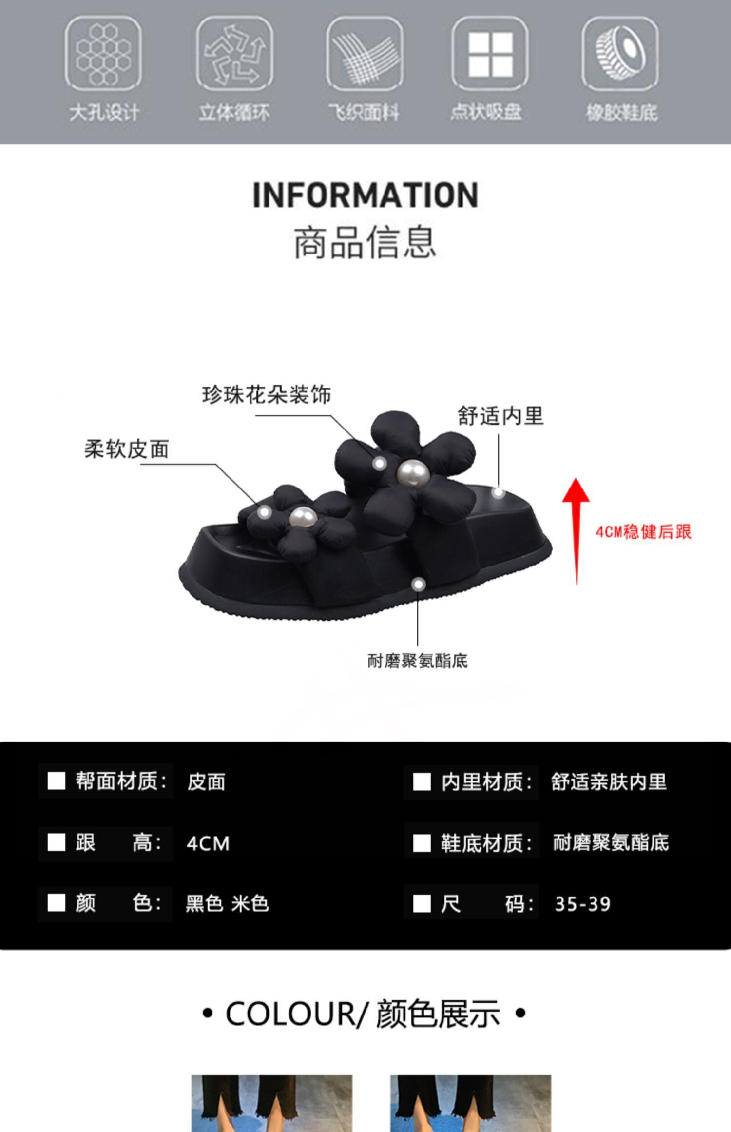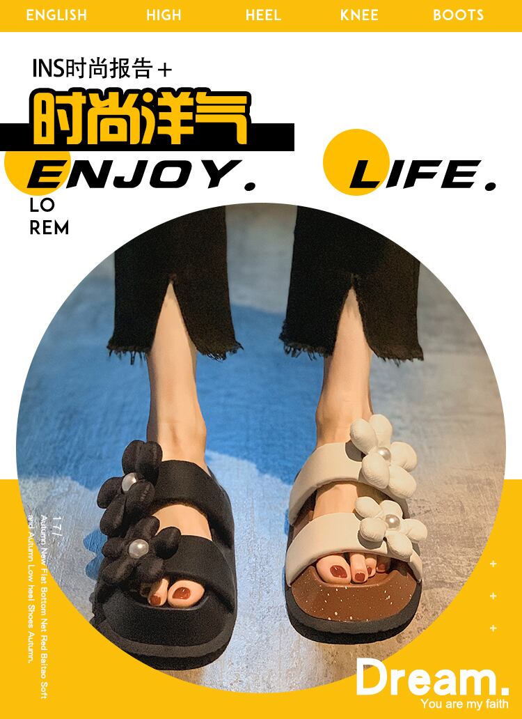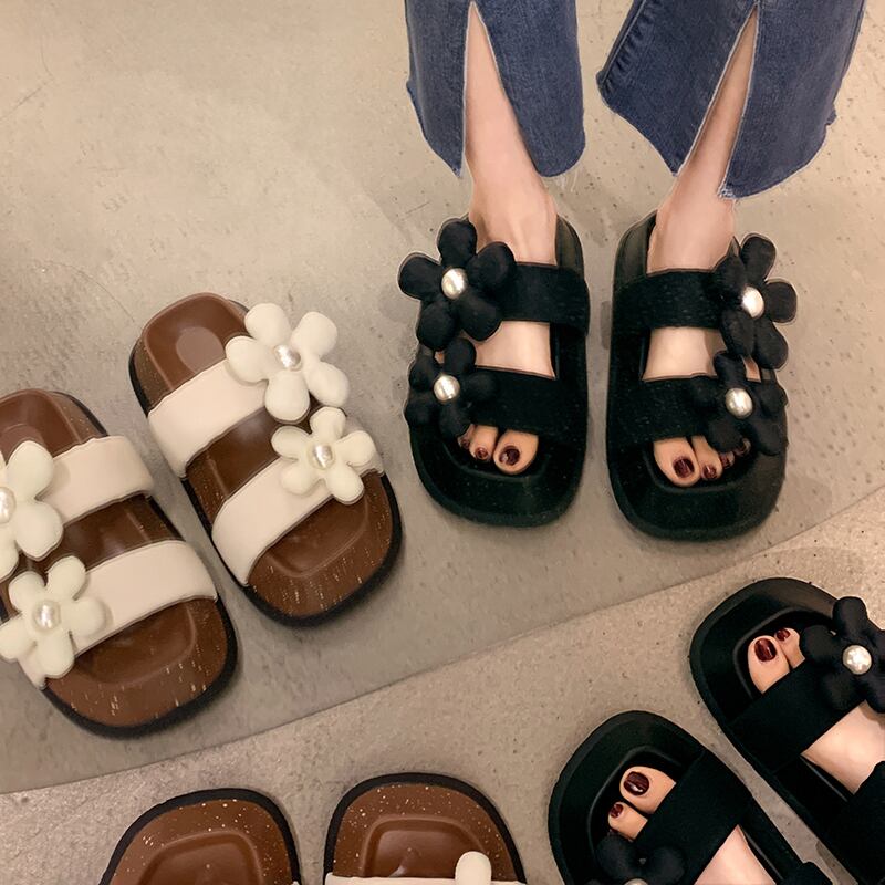 女性の2022年夏の新しいスタイルの真珠の花の厚い底の滑り止めのファッションオールマッチレトロサンダルとスリッパ ミュール 靴 シューズ サマー 夏物 パール フラワーデザイン jxjxf55336435613