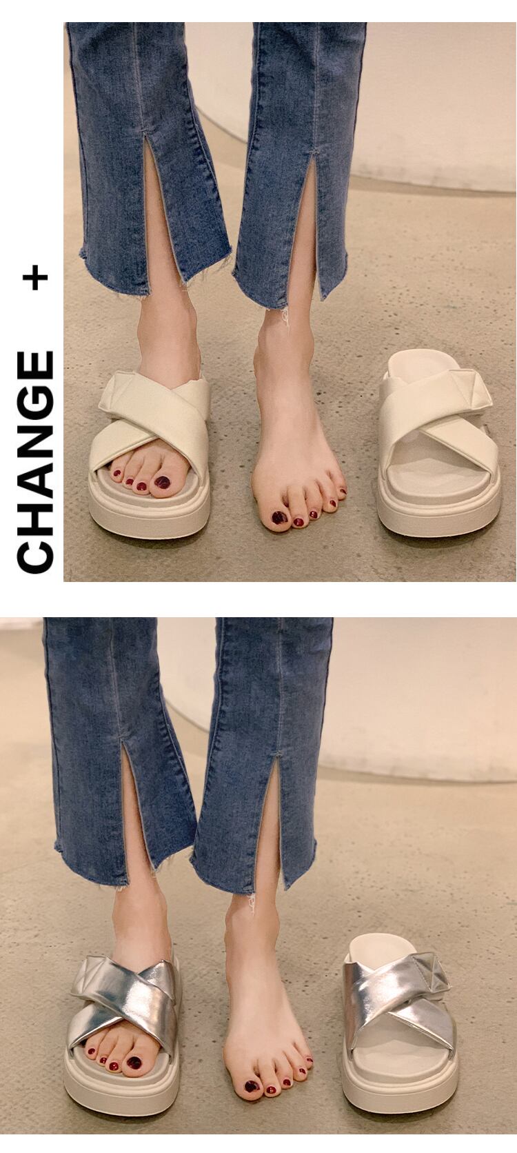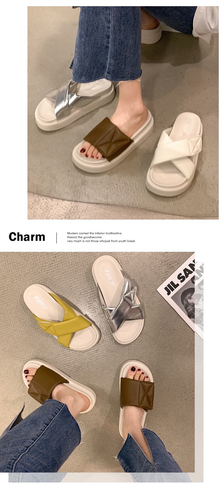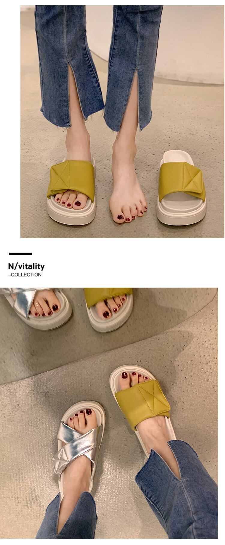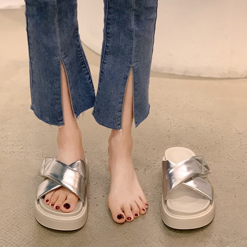 一言スリッパ女性の2022年夏の新しいスタイルのベルクロスポンジケーキ滑り止めネットレッドファッションオールマッチレトロサンダルとスリッパ jxjxf84904102687