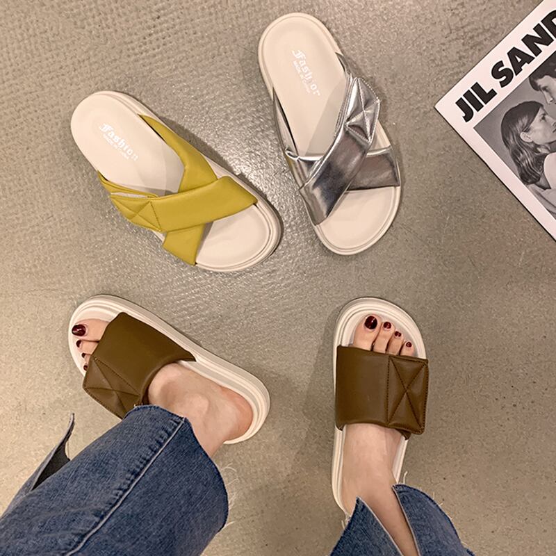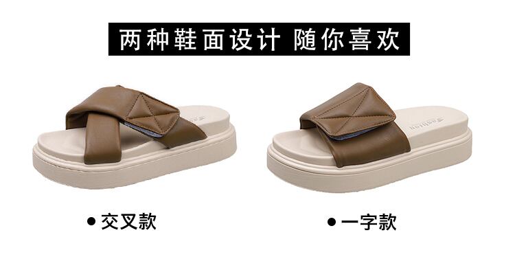 一言スリッパ女性の2022年夏の新しいスタイルのベルクロスポンジケーキ滑り止めネットレッドファッションオールマッチレトロサンダルとスリッパ ミュール 靴 シューズ サマー 夏物 jxjxf84904102687
