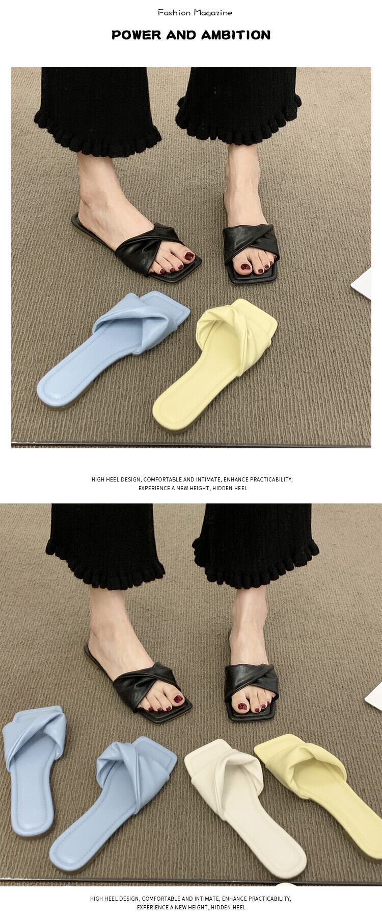アウターシューズ女性用インタイド2022夏新作スーパーオールマッチ優しいフラットボトム滑り止め一言サンダルとスリッパ ミュール 靴 サマー 夏物 スリッポン jxjxf58810189581