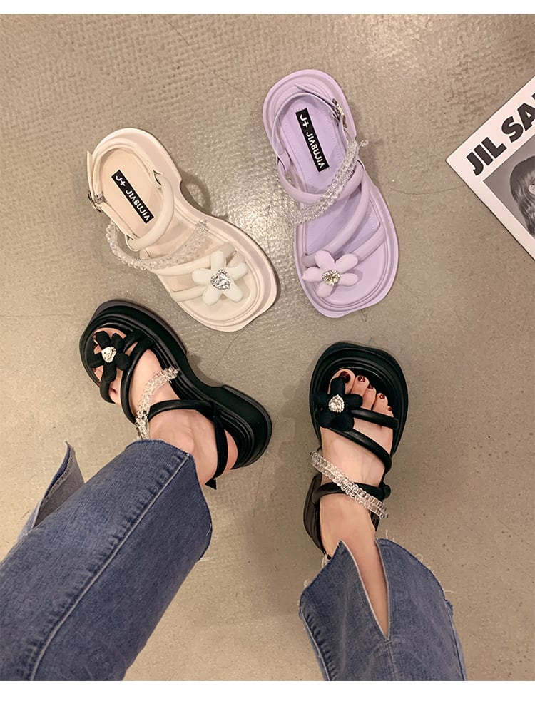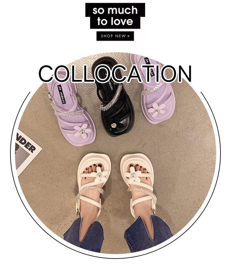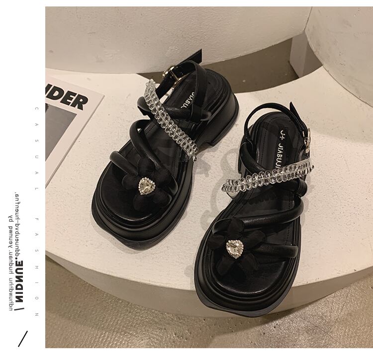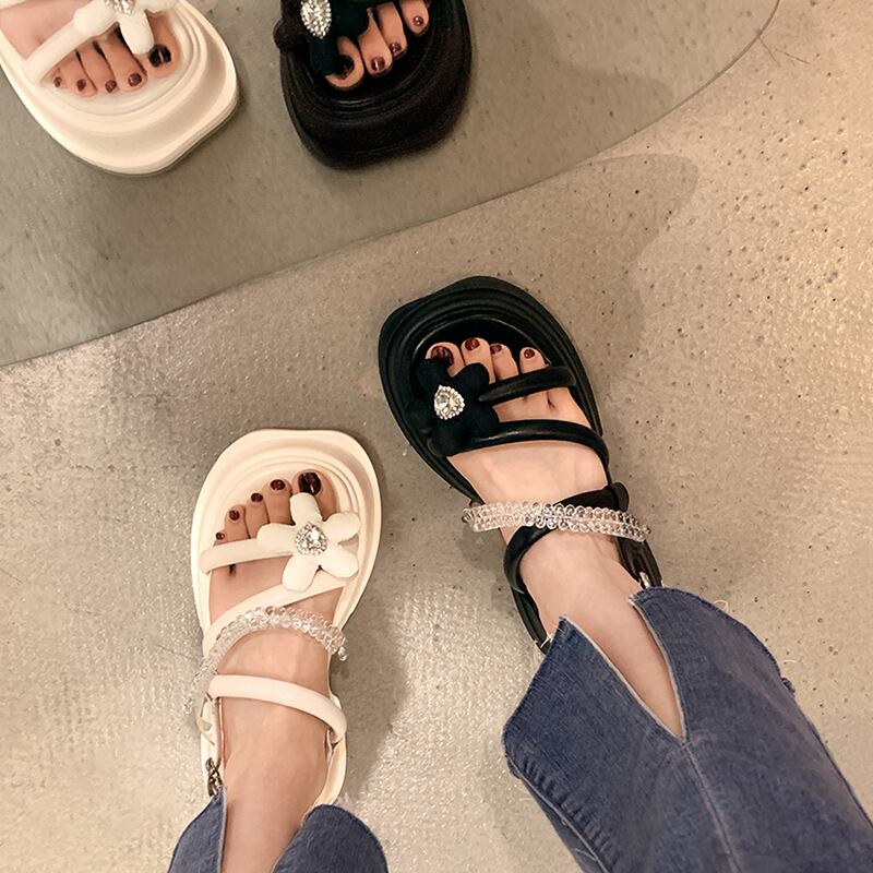 ローマのサンダル女性の2022年夏の新しいファッションオールマッチレトロラインストーンの花厚い底滑り止めビーチシューズ潮 靴 サマー 夏物 フラワーデザイン jxjxf21546214353
