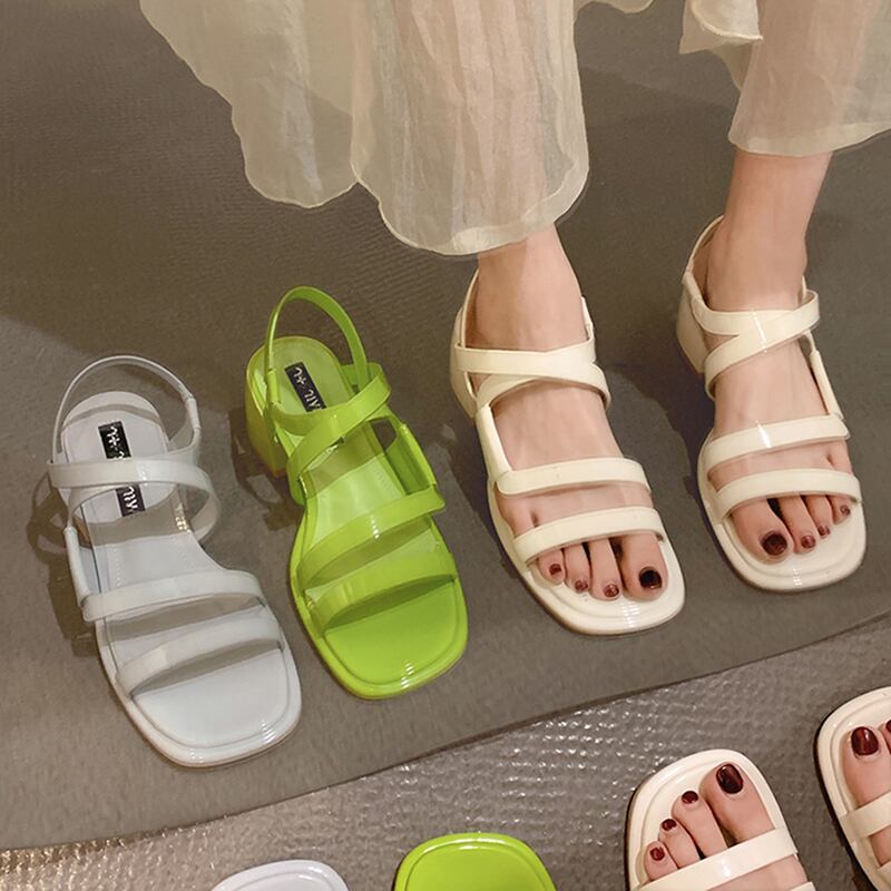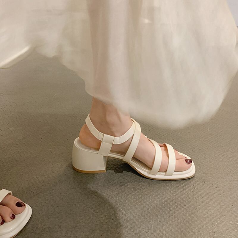 サンダルレディーススカート2022夏の新しい厚いヒール滑り止めネットレッドファッションオールマッチ優しいレトロなハイヒール 靴 シューズ サマー 夏物 jxjxf95317262764