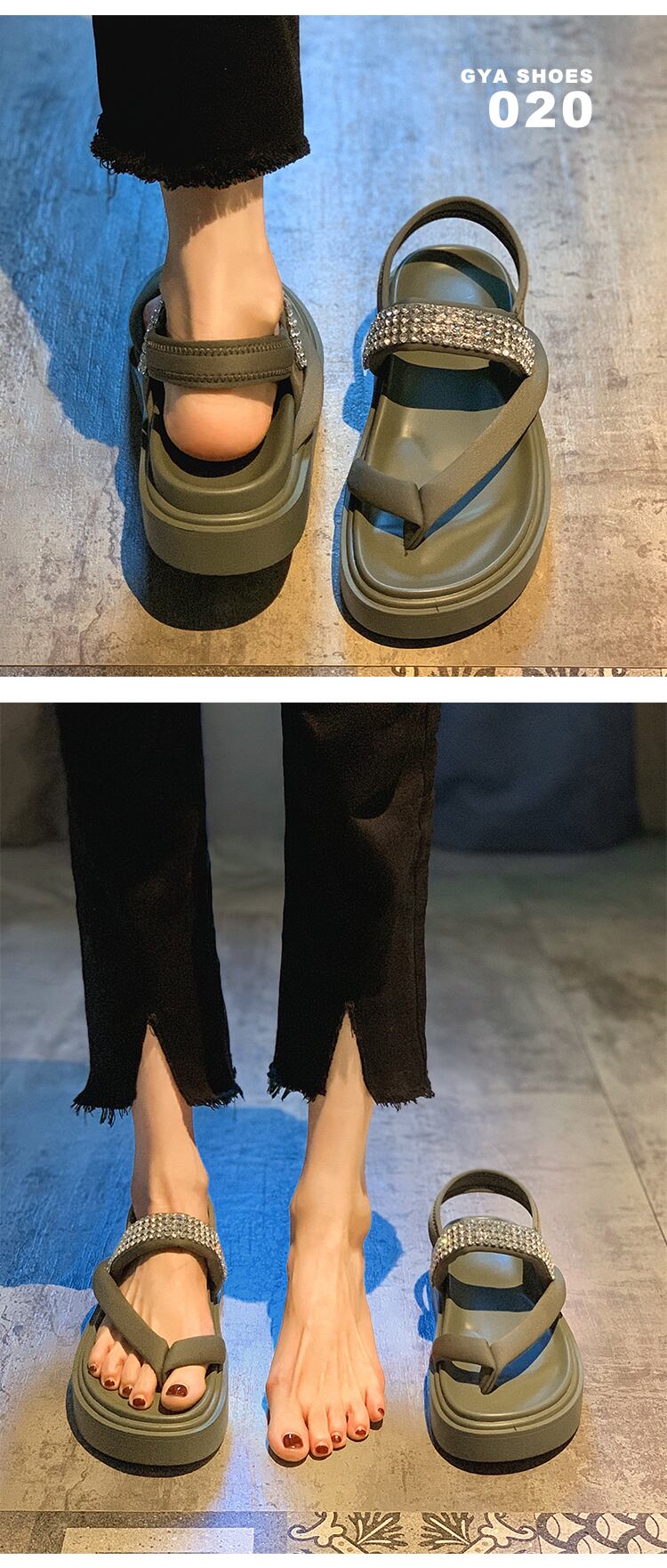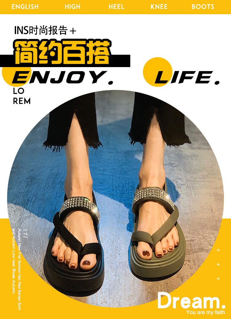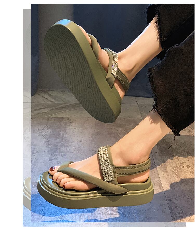 レディースシューズサマーサンダル2022新しいスーパーファッションオールマッチレトロラインストーン厚底滑り止めカジュアルビーチシューズ 靴 夏物 jxjxf40133140561