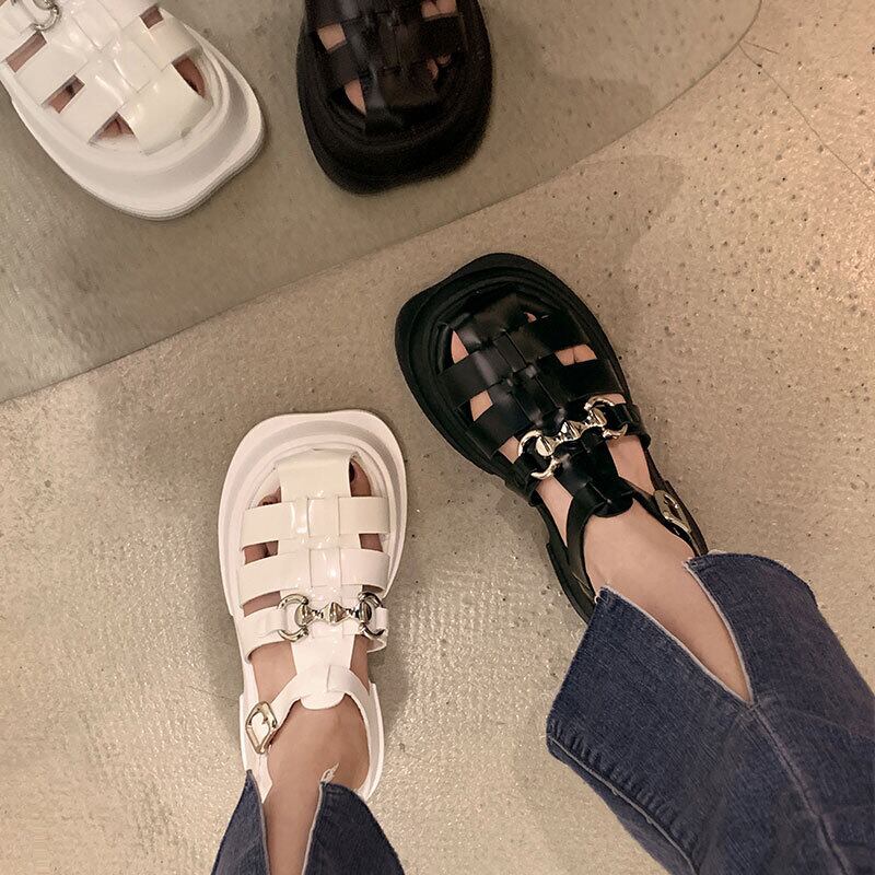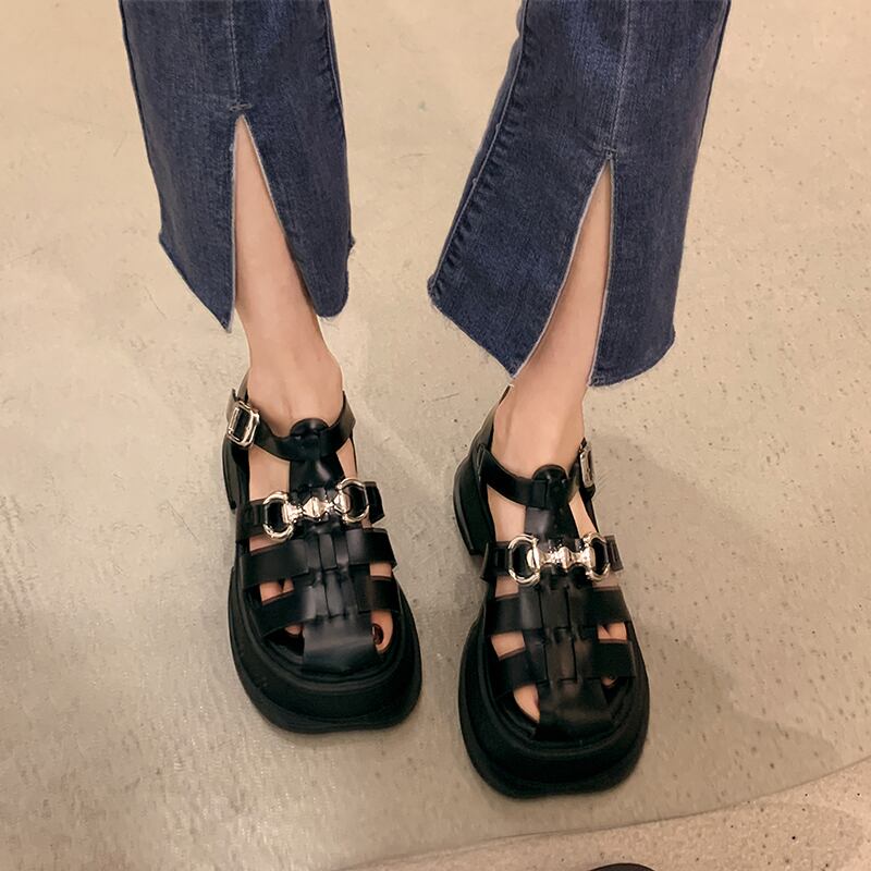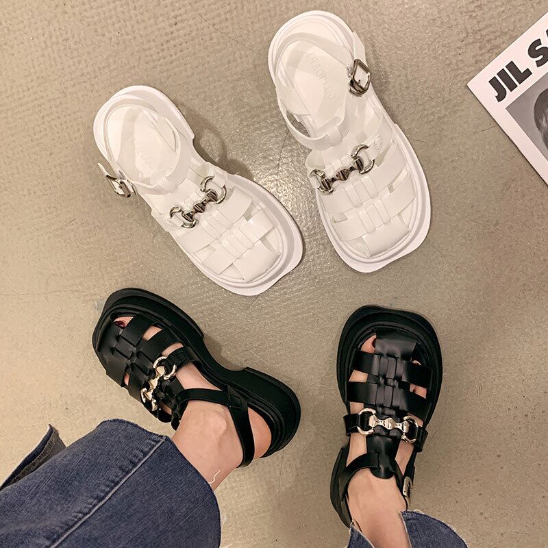 包頭サンダルレディース2022夏の新しいファッションレトロな金属編組小さな厚いヒール滑り止めビーチシューズ 靴 サマー 夏物 jxjxf63277091090