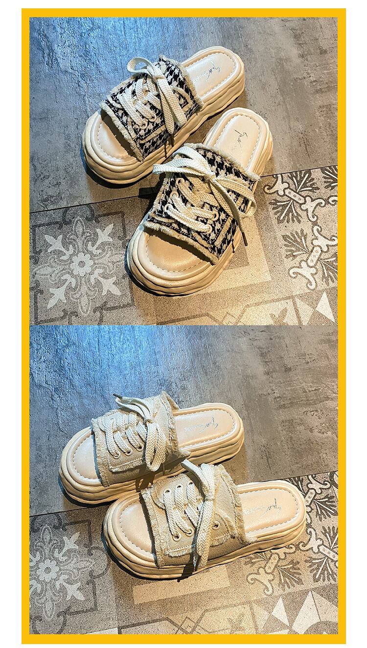 女性の2022年夏の新しいレースアップスポンジケーキ滑り止めネットレッドファッションオールマッチカジュアルサンダルとスリッパ ミュール 靴 シューズ サマー 夏物 jxjxf85415649289