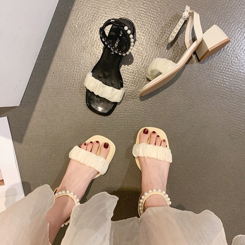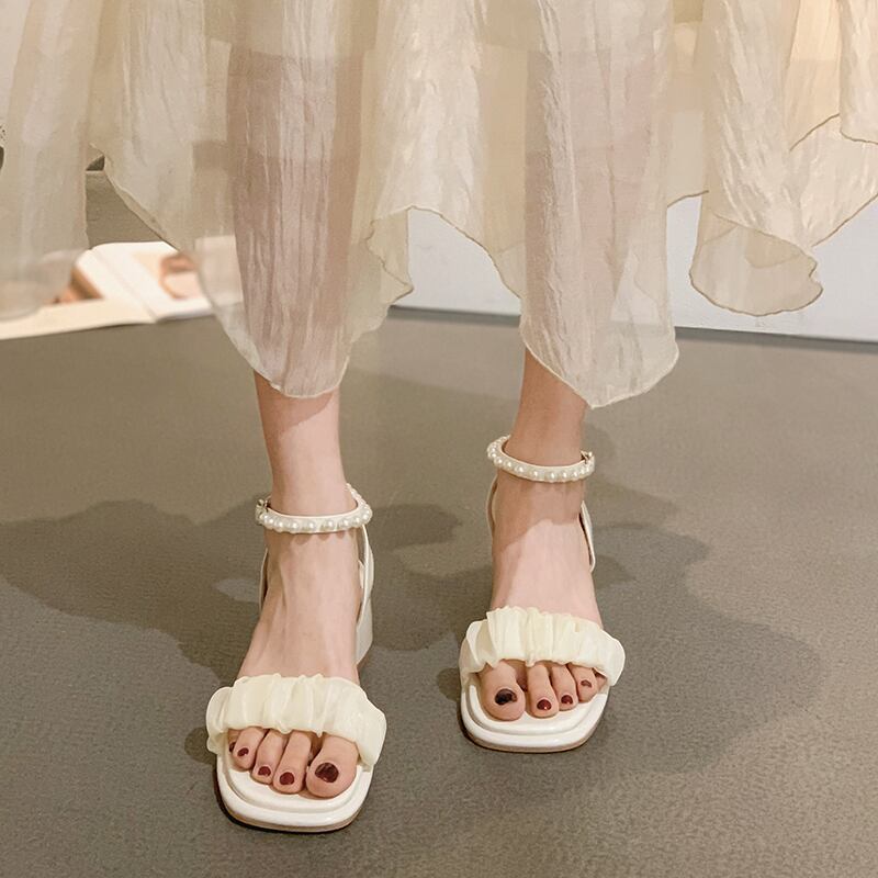 サンダルレディース2022夏ニューパールシックヒールノンスリップネットレッドファッションオールマッチフェアリースタイルフレンチローマンシューズ 靴 サマー 夏物 真珠 jxjxf70984666034