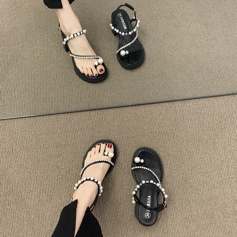 フェアリースタイルのサンダル女性2022年夏の新しいパールラインストーンセットつま先の厚いヒールネットレッドファッションオールマッチハイヒール 靴 シューズ サマー 夏物 真珠 jxjxf6936566154