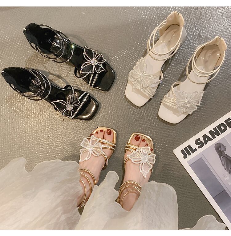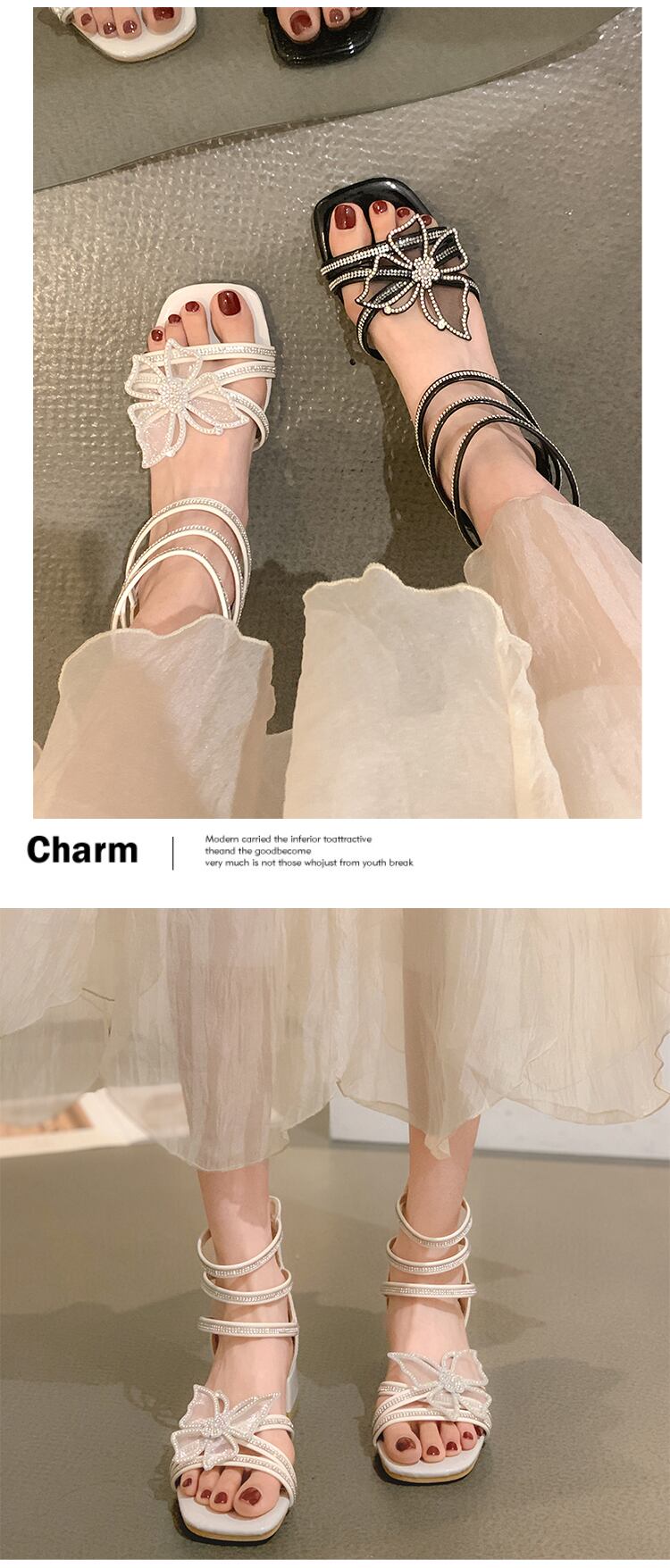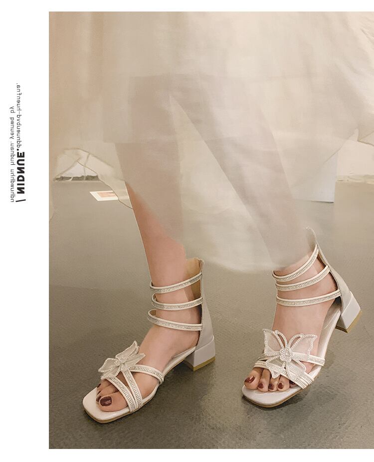 オープントゥサンダル女性の2022年夏の新しいラインストーンの厚いかかと滑り止めネット赤いファッション野生の妖精スタイルのローマの靴 シューズ レッド ヒール サマー 夏物 jxjxf52948302984