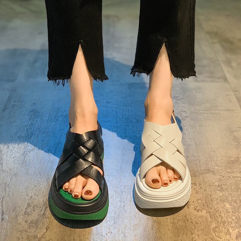 レディースサンダル2022年新夏ネットレッドファッションレトロ織り厚底滑り止めカジュアルビーチシューズインタイド 靴 サマー 夏物 jxjxf42384590180