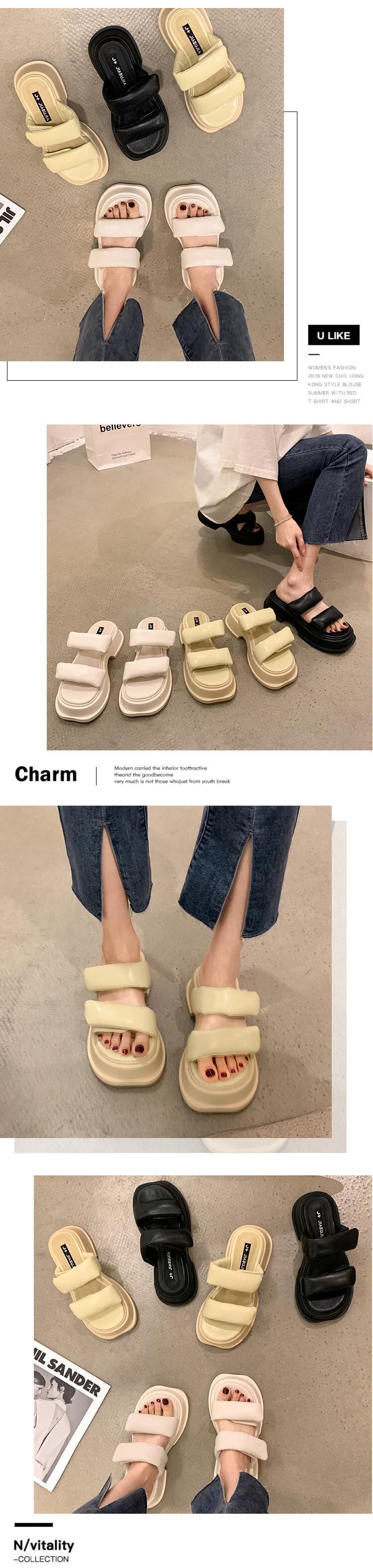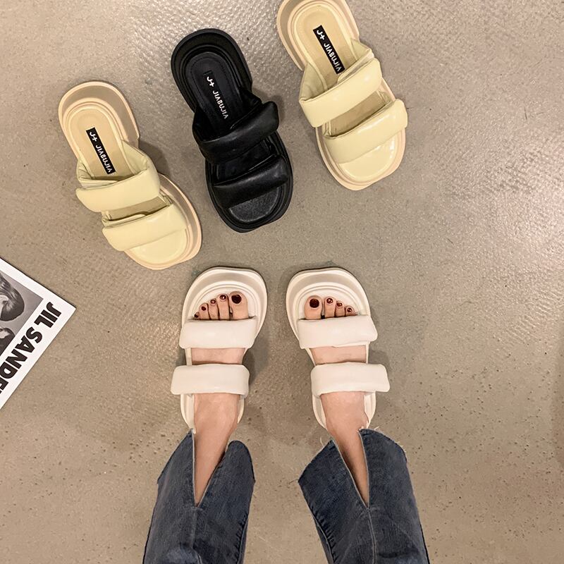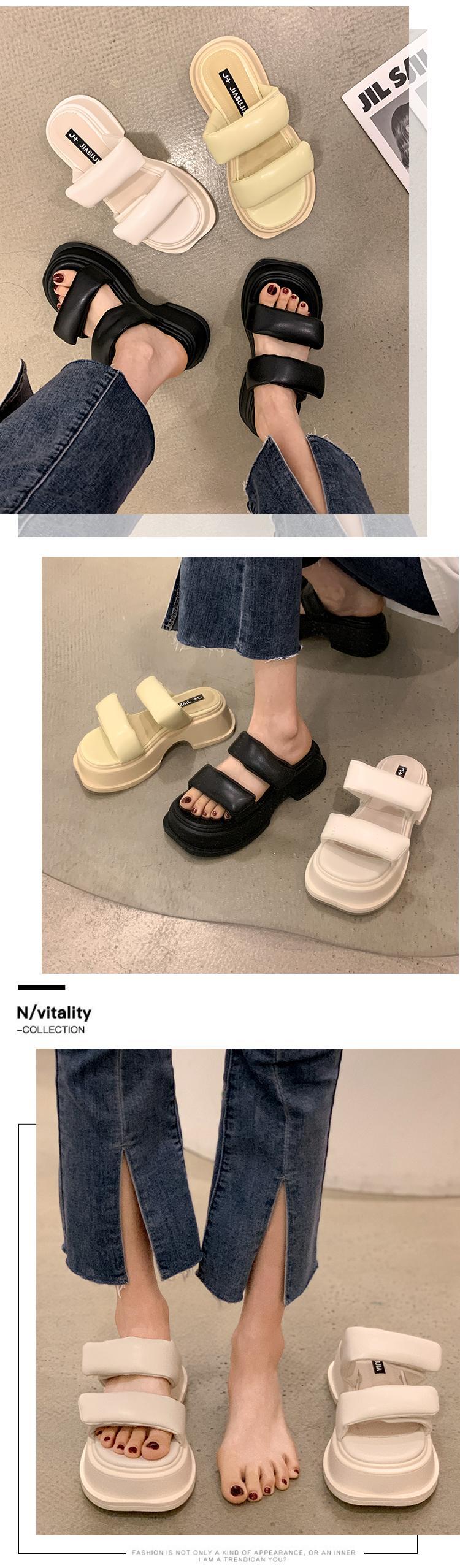 サンダルとスリッパの女性の2022年夏の新しいベルクロの厚いかかと滑り止めネット赤のファッションオールマッチ一言ドラッグイン潮 レッド ヒール 靴 シューズ ミュール サマー 夏物 jxjxf21866265049