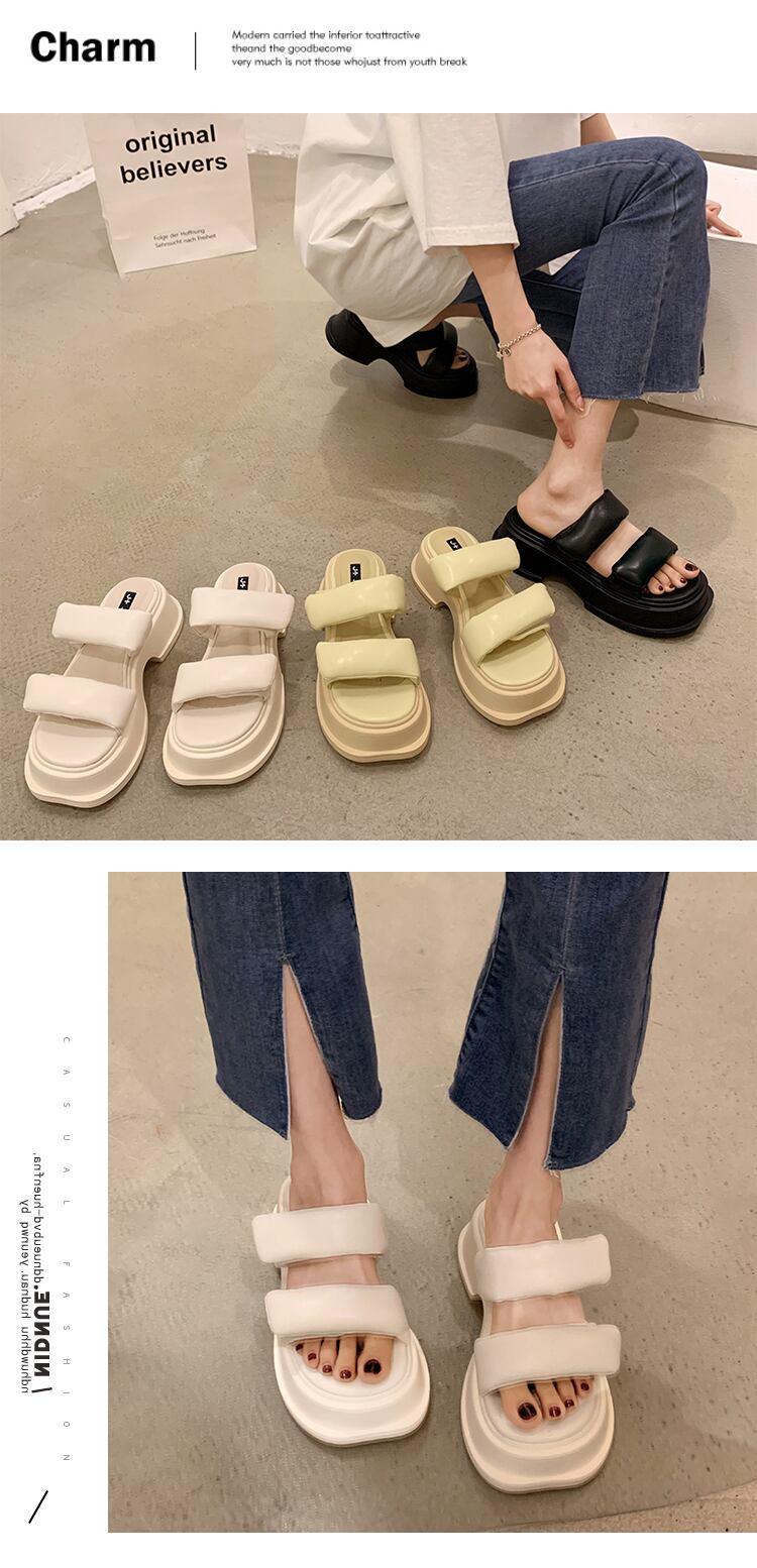 女性の2022年夏の新しいスタイルベルクロ厚いヒール滑り止めファッションオールマッチインタイドサンダルとスリッパ ミュール 靴 シューズ サマー 夏物 jxjxf88083603946