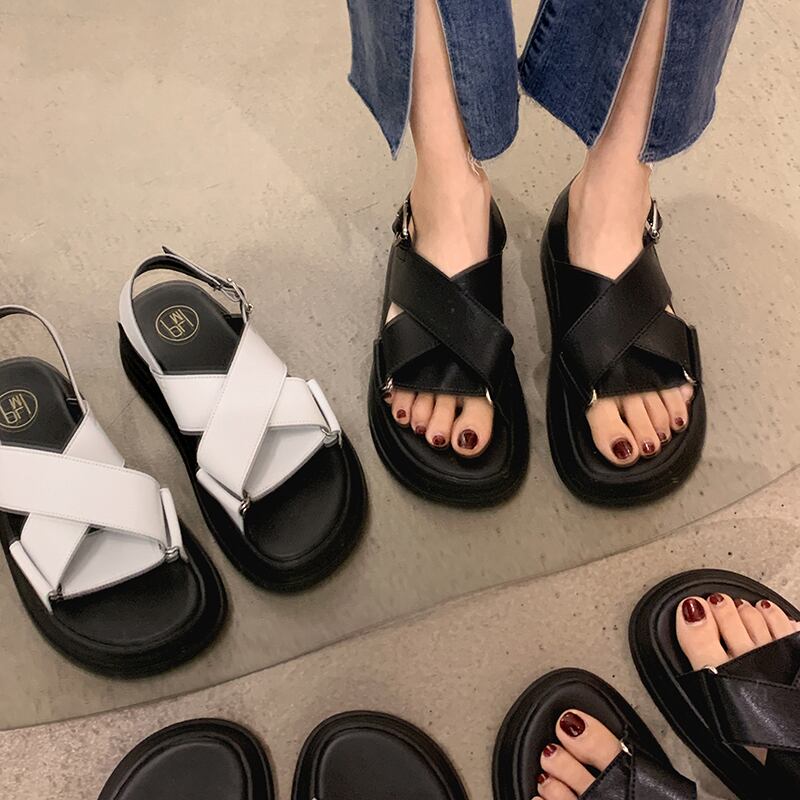サマーサンダルレディース2022スーパーオールマッチレトロベルトバックルマフィン厚底滑り止めカジュアルビーチシューズ 靴 夏物 ハーネス jxjxf46757477059