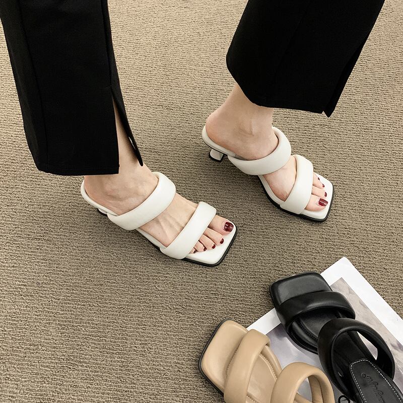 スリッパ女性の潮汐2022年夏の新しいアウターウェアファッションレトロオールマッチ小さなスチレットヒールのサンダルとスリッパ ミュール 靴 シューズ サマー 夏物 jxjxf73695489673