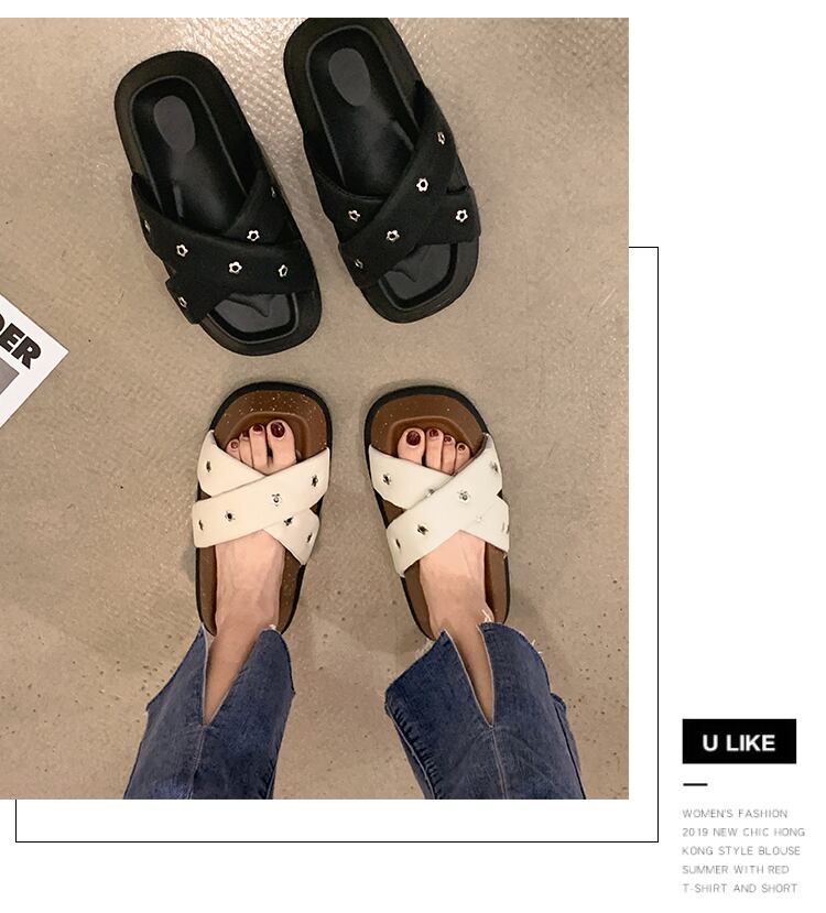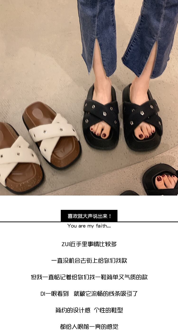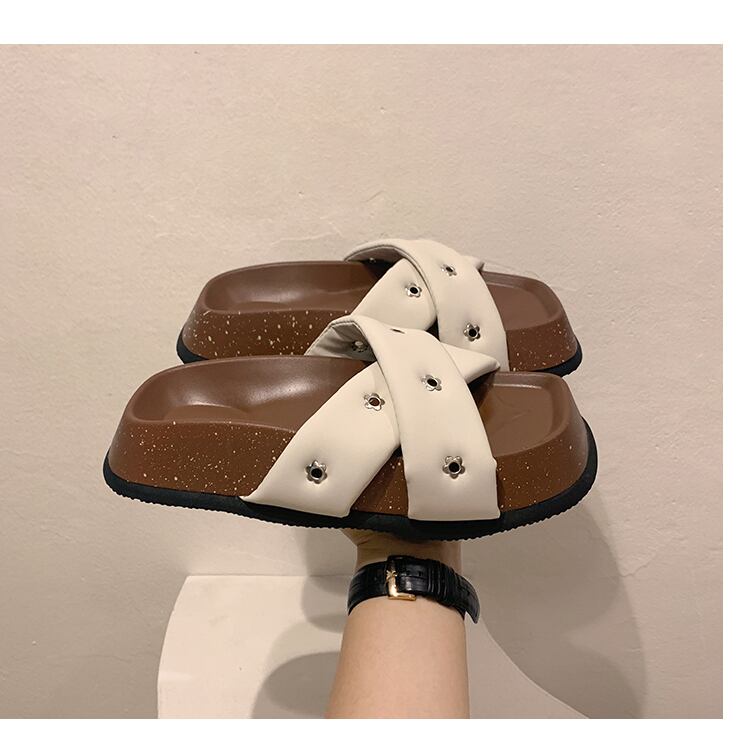 スリッパは2022年夏の女性の夏に出かけます新しいクロスマフィン滑り止めネットレッドスーパーファッションオールマッチカジュアルワンワードスリッパ ミュール 靴 シューズ サマー 夏物 jxjxf8355883060