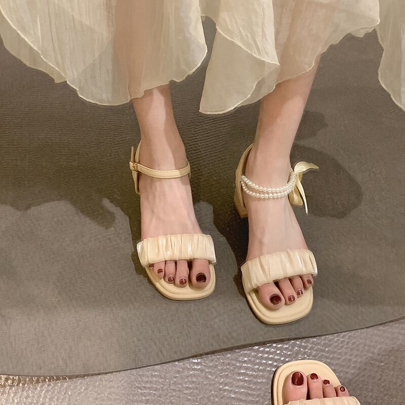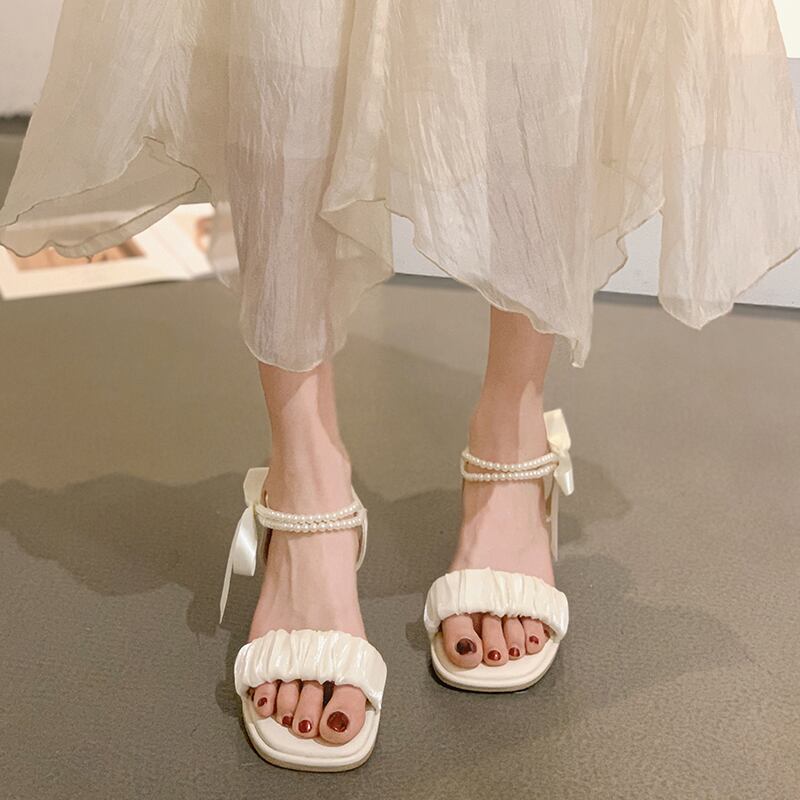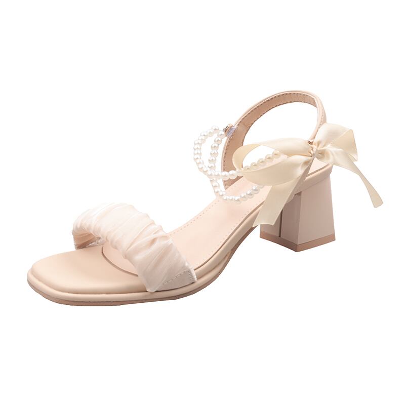 フェアリースタイルのサンダル女性の2022年夏の新しいスーパーファイアオールマッチパールレースアップ厚いヒール滑り止めハイヒール 靴 シューズ サマー 夏物 真珠 jxjxf30088232066