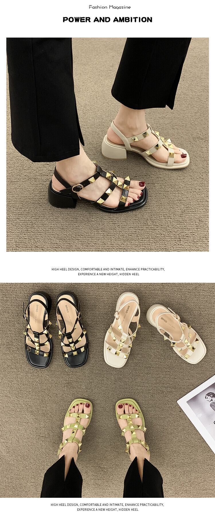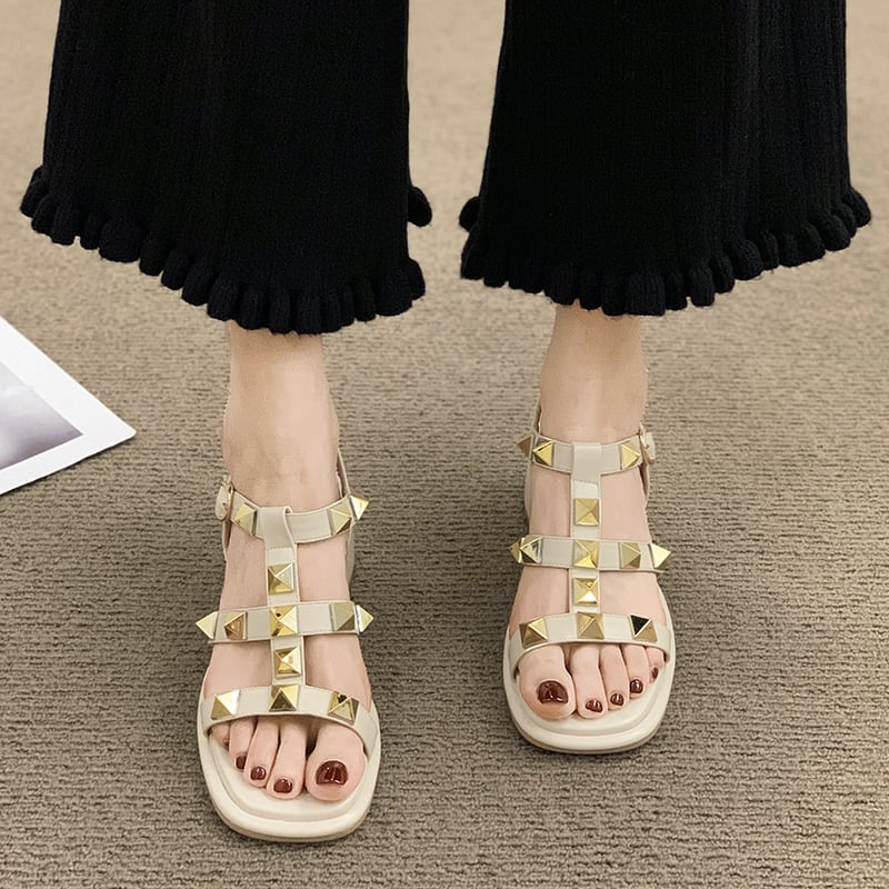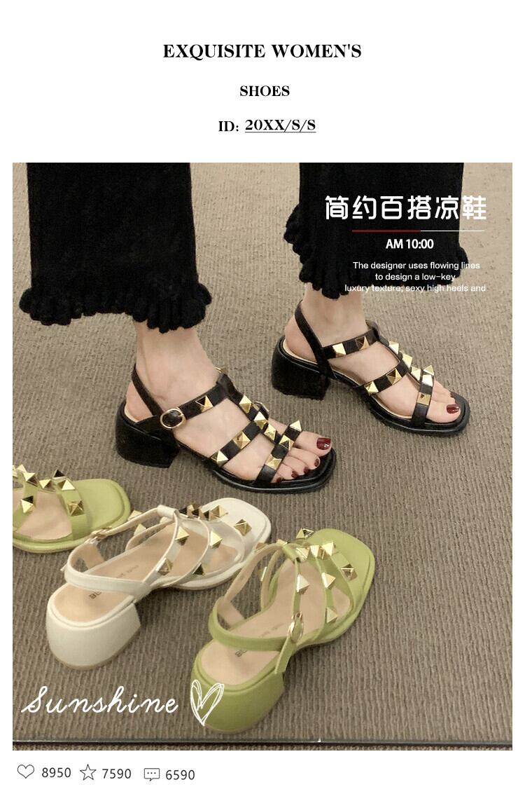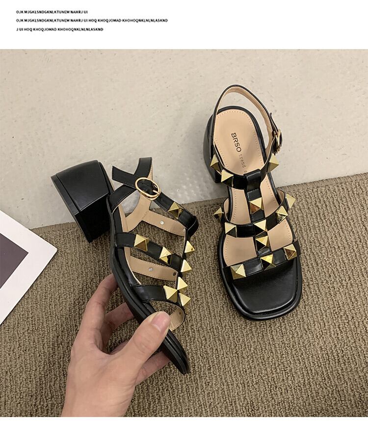 ローマのサンダルレディース2022年夏の新しいネットレッドファッション小さなレトロなリベット厚いヒール滑り止めハイヒール 靴 シューズ サマー 夏物 jxjxf36597088206