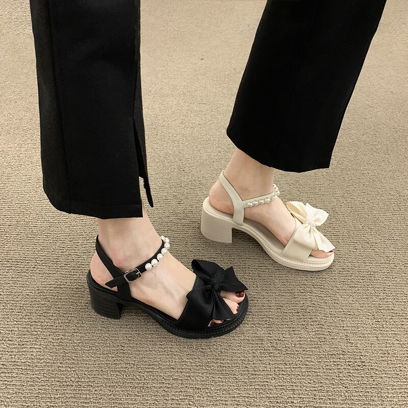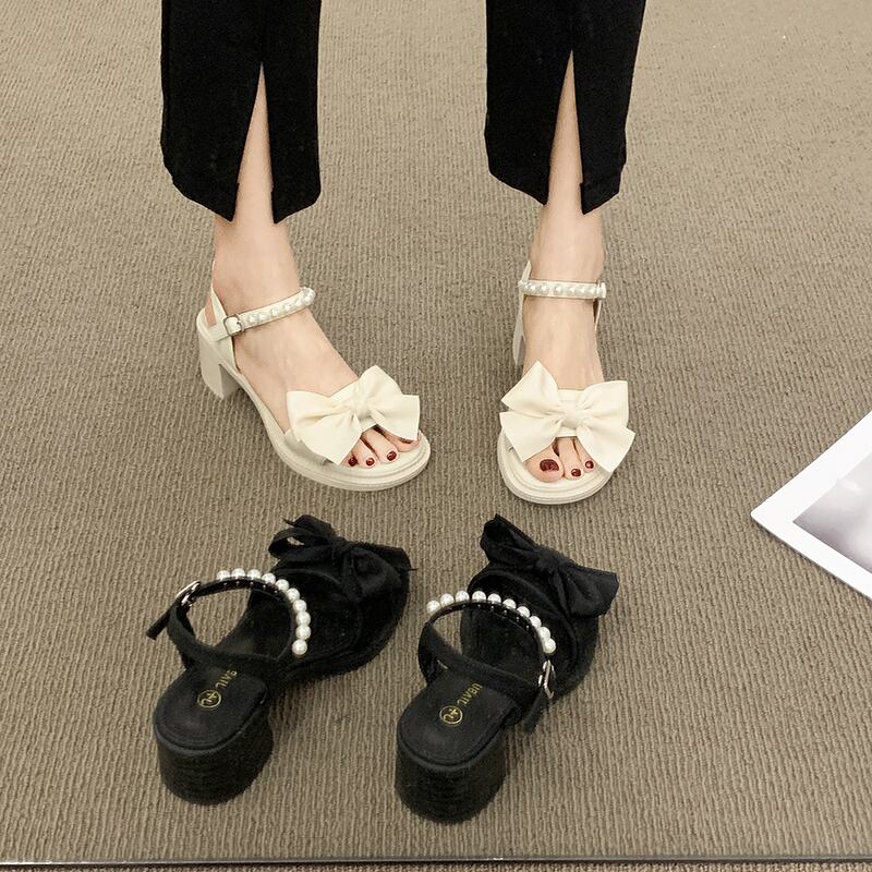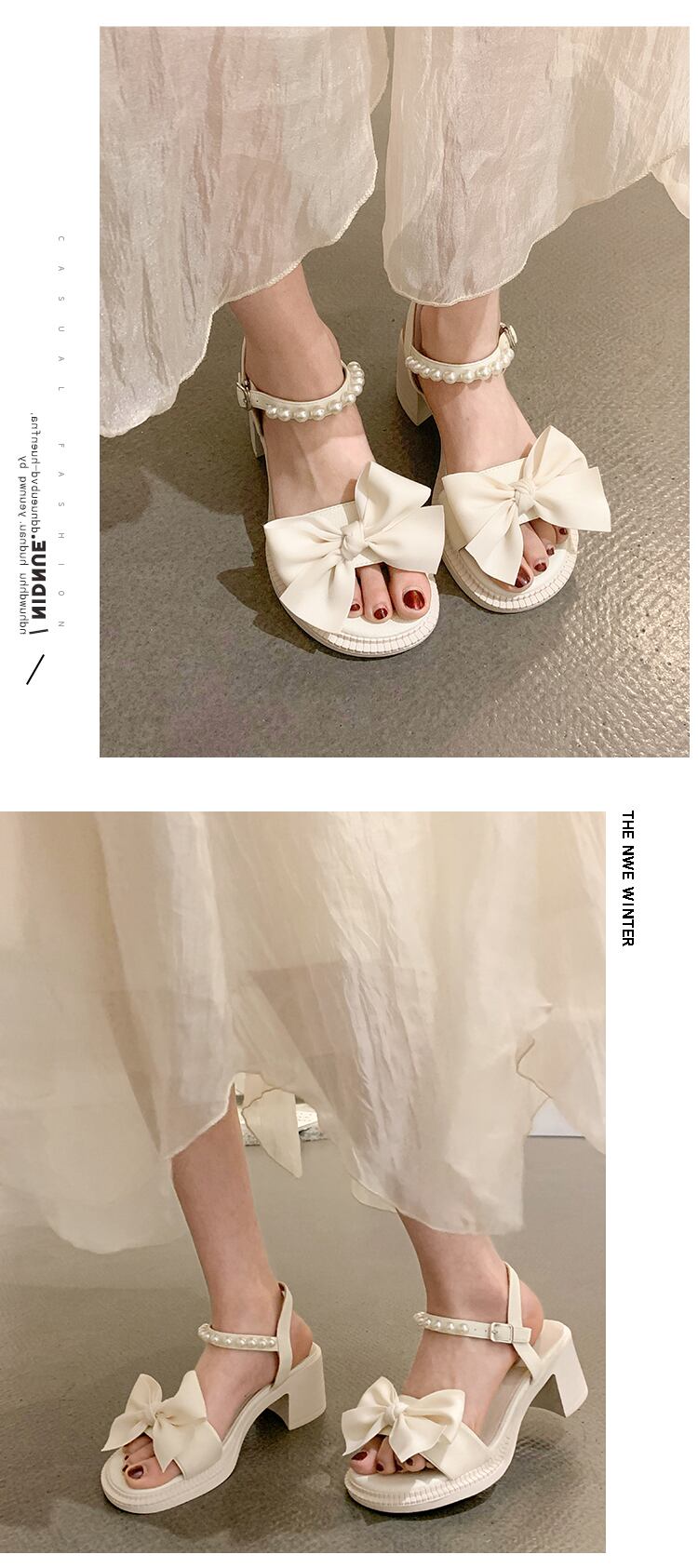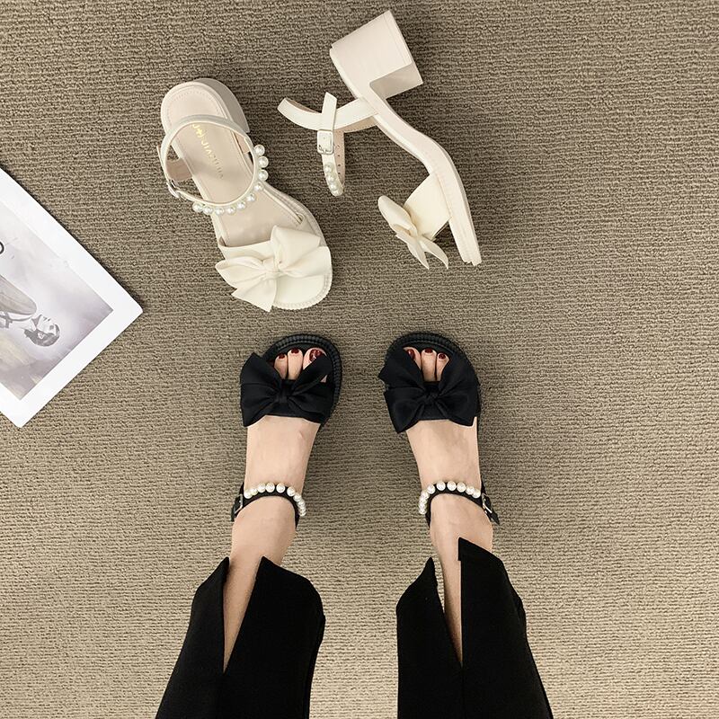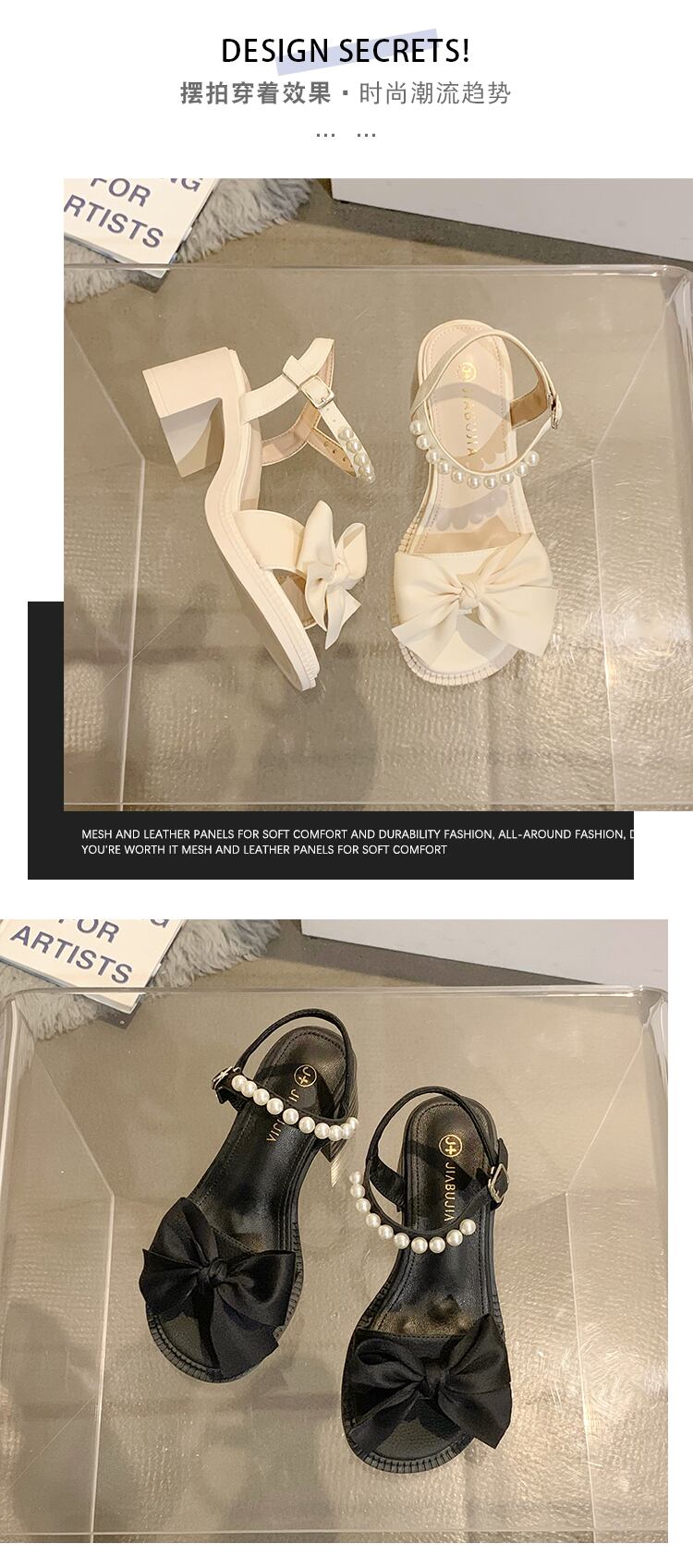 サンダルレディーススカート2022夏の新しいファッションかわいい弓厚いヒール滑り止めの妖精スタイルのハイヒール リボン 靴 シューズ 大人ガーリー スウィート キュート カジュアル サマー 夏物 jxjxf25714056421