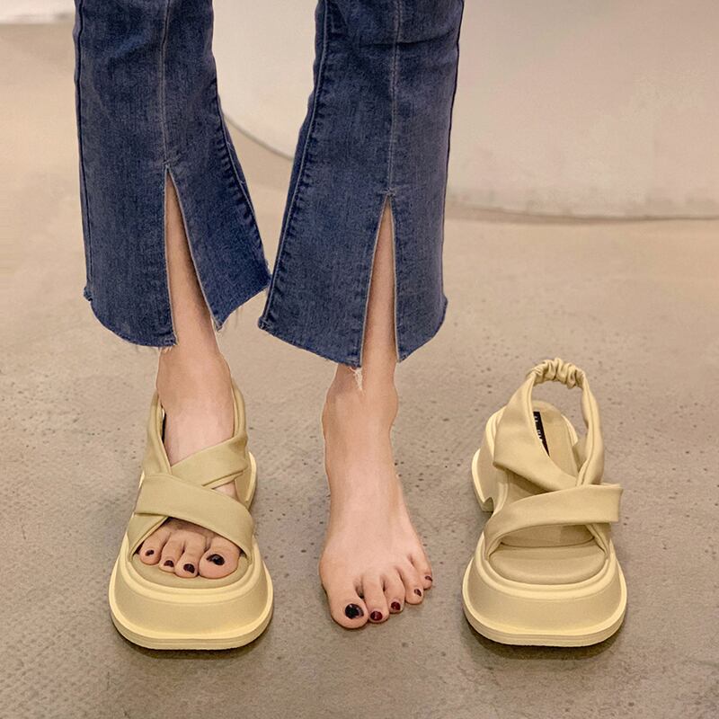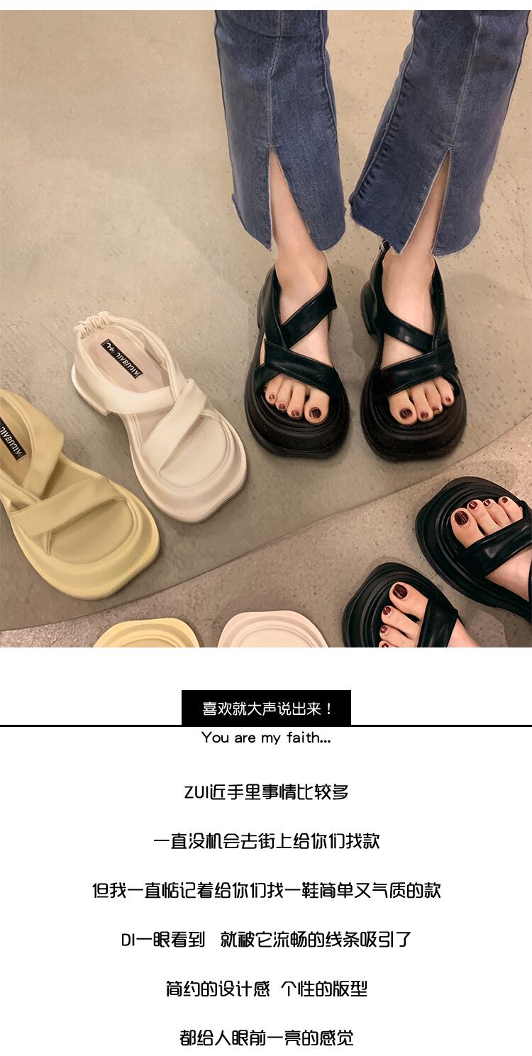 つま先の開いたサンダルレディース2022年夏の新しいクロスシックヒール滑り止めファッションオールマッチ小さなレトロなローマの靴 シューズ サマー 夏物 jxjxf10541983292