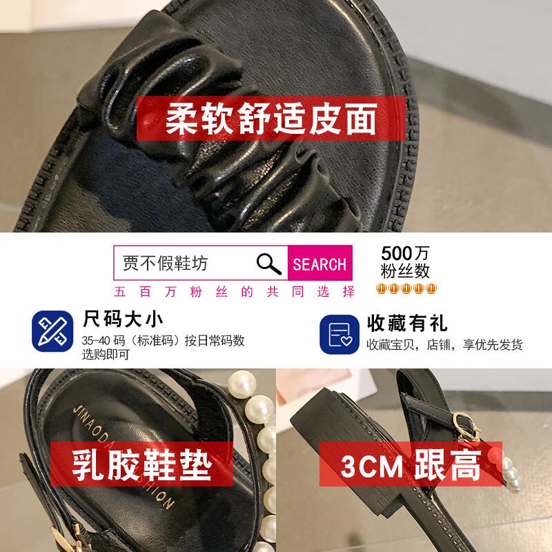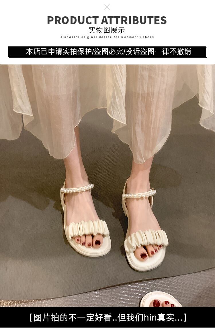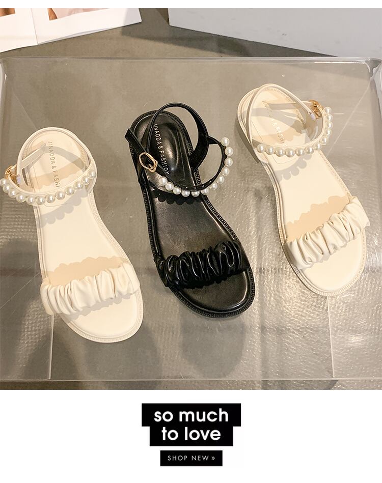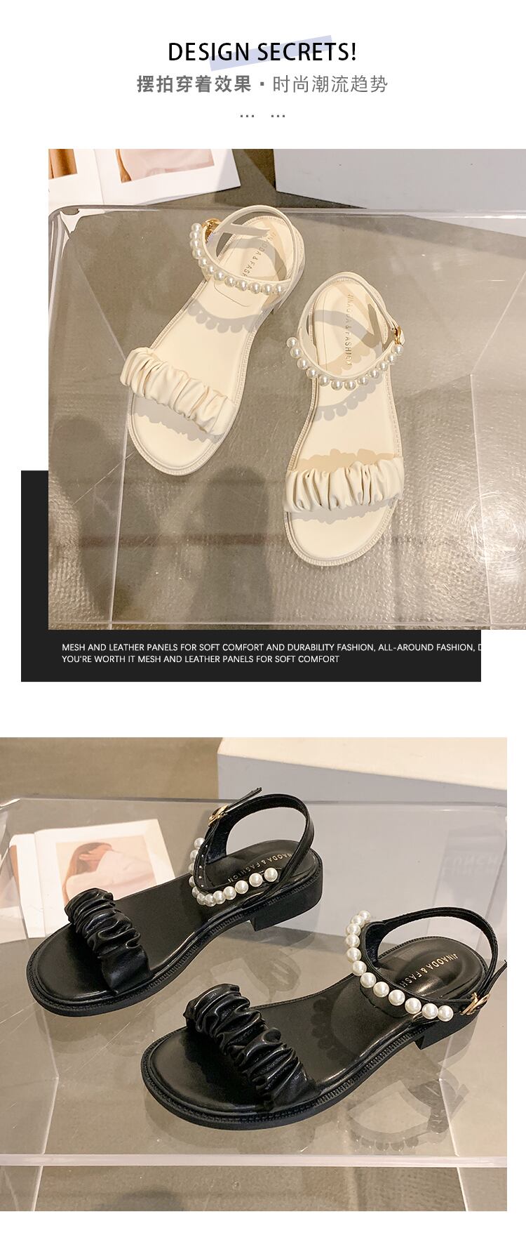 サンダルレディース2022夏の新しいファッションオールマッチレトロパールバックルフラット滑り止めローマの靴instide シューズ サマー 夏物 真珠 jxjxf19811125762
