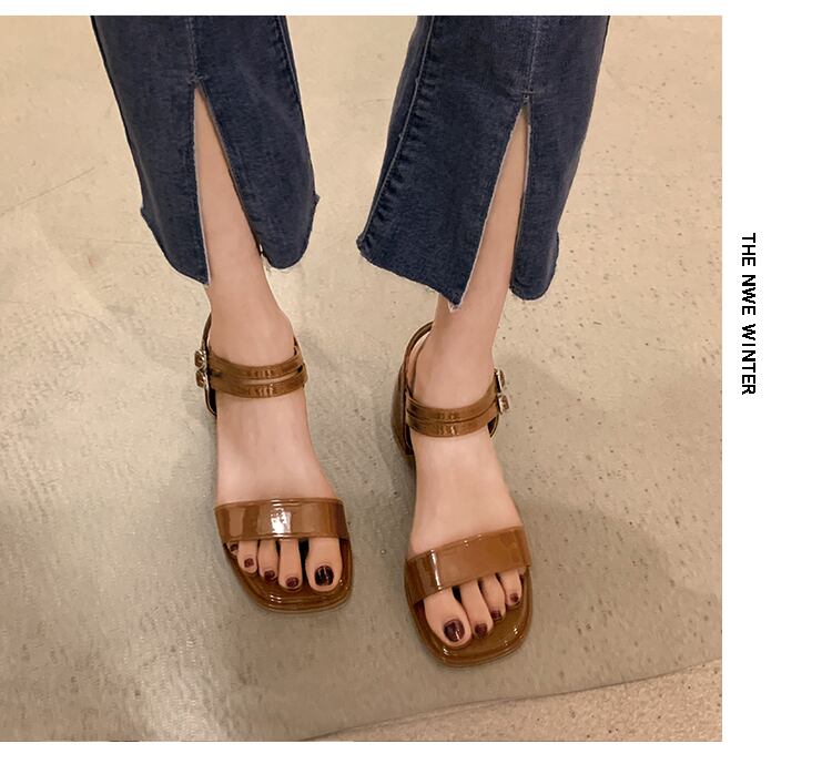 ローマの靴の女性の2022年夏の新しい厚いヒール滑り止めスーパーファッションオールマッチ小さなレトロなハイヒールのサンダル シューズ サマー 夏物 jxjxf92475284145