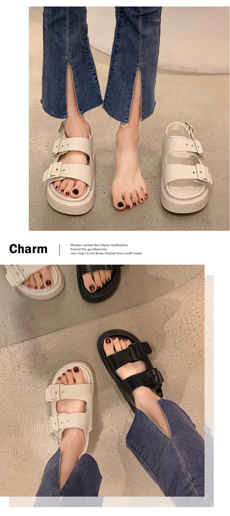 夏のサンダル女性の2022年の新しいファッションレトロベルトバックル大学生厚底滑り止めカジュアルビーチシューズ潮 靴 サマー 夏物 ハーネス jxjxf54561647615