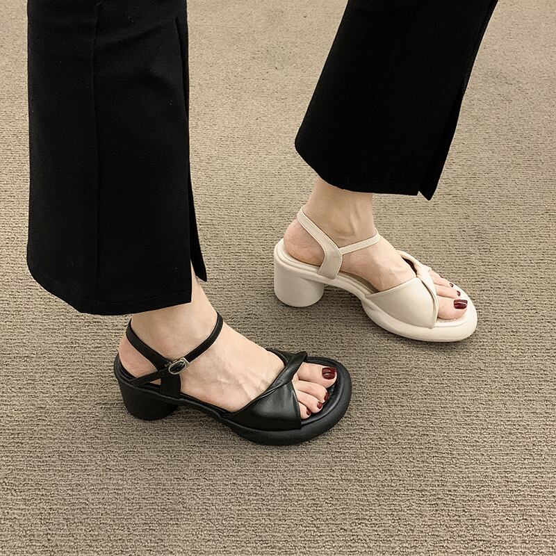 一言ベルトサンダル女性の2022年夏の新しいネットレッドスーパーファッションフレンチレトロシックヒール滑り止めハイヒール 靴 シューズ サマー 夏物 ハーネス jxjxf75549746485