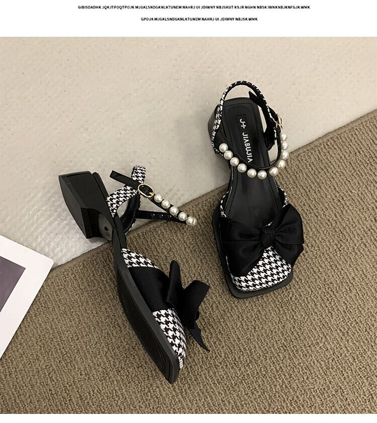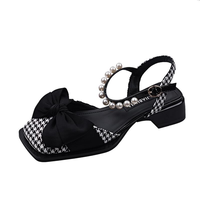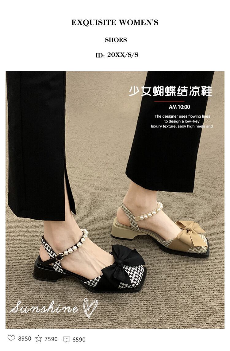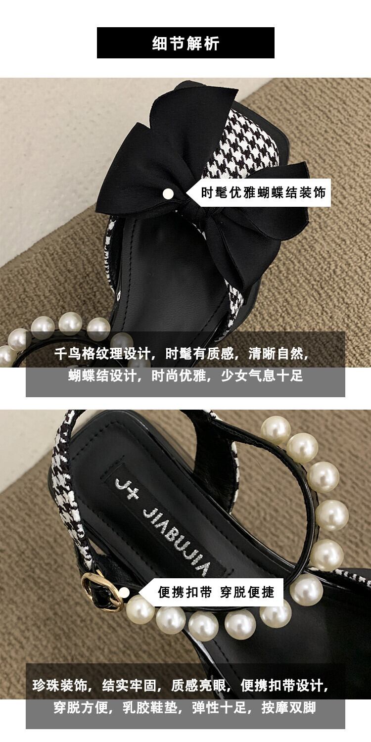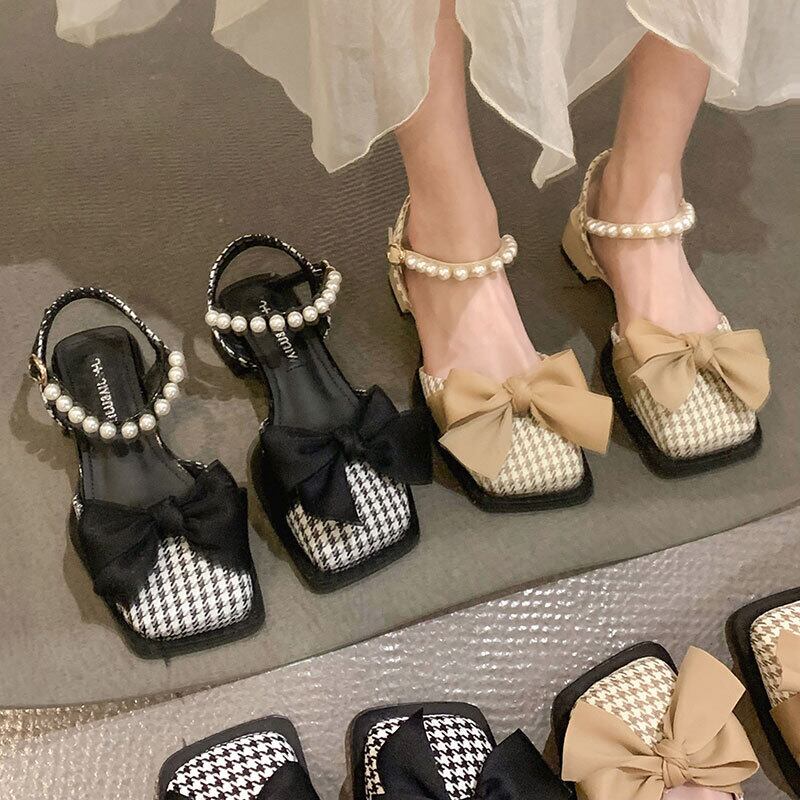包頭サンダル女子お揃いのスカート2022年夏新作ボウパール厚手のヒールノンスリップフェアリースタイルロマネスクシューズ 靴 リボン サマー 夏物 真珠 jxjxf67866325300