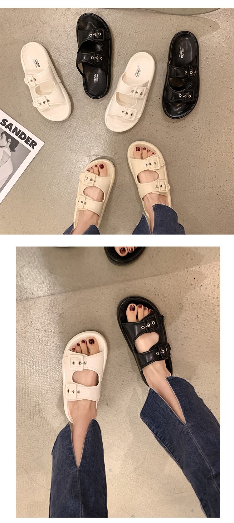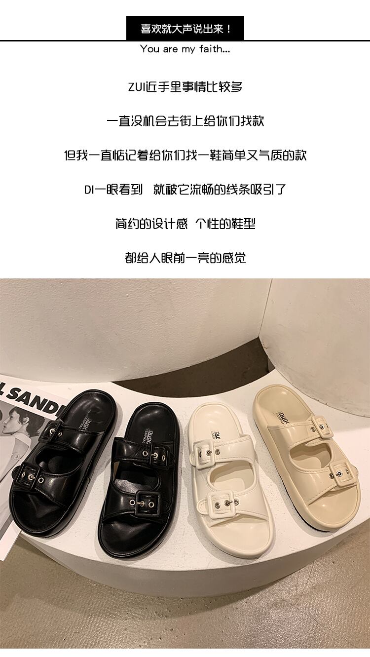 アウターウェアスリッパレディース2022年夏の新しいファッションオールマッチレトロベルトバックルフラットボトム滑り止めカジュアルサンダルとスリッパ jxjxf758432011