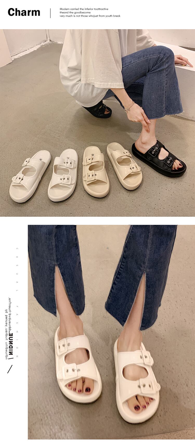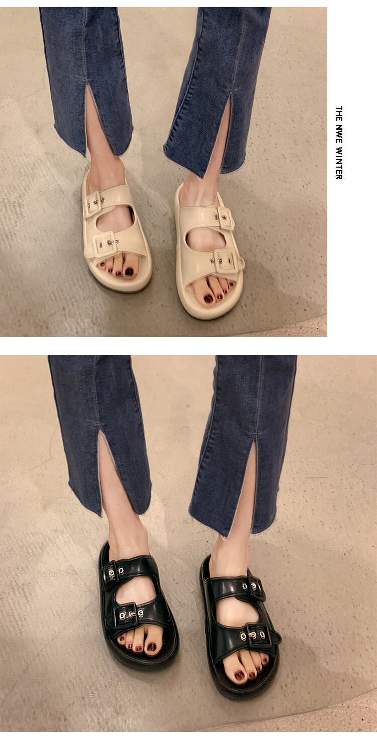 アウターウェアスリッパレディース2022年夏の新しいファッションオールマッチレトロベルトバックルフラットボトム滑り止めカジュアルサンダルとスリッパ ミュール 靴 シューズ サマー 夏物 ハーネス jxjxf758432011