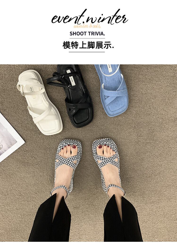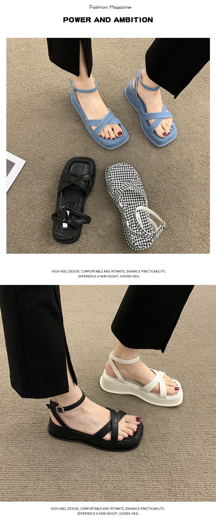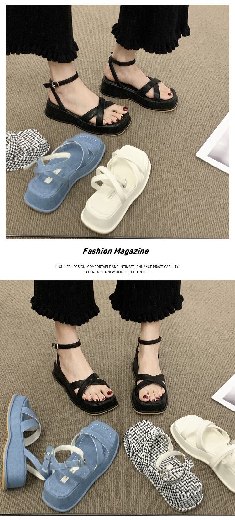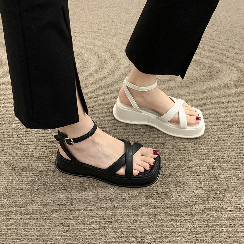ローマの靴の女性の2022年夏の新しいクロスマフィン滑り止めネット赤スーパーファッション小さなレトロなサンダル シューズ レッド サマー 夏物 jxjxf32545855850