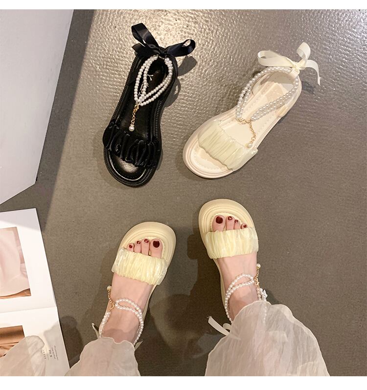 サマーサンダルレディース2022ニューファッションオールマッチ優しいレトロパール厚底滑り止め一言ビーチシューズトレンド 靴 夏物 スリッポン 真珠 jxjxf31768502832