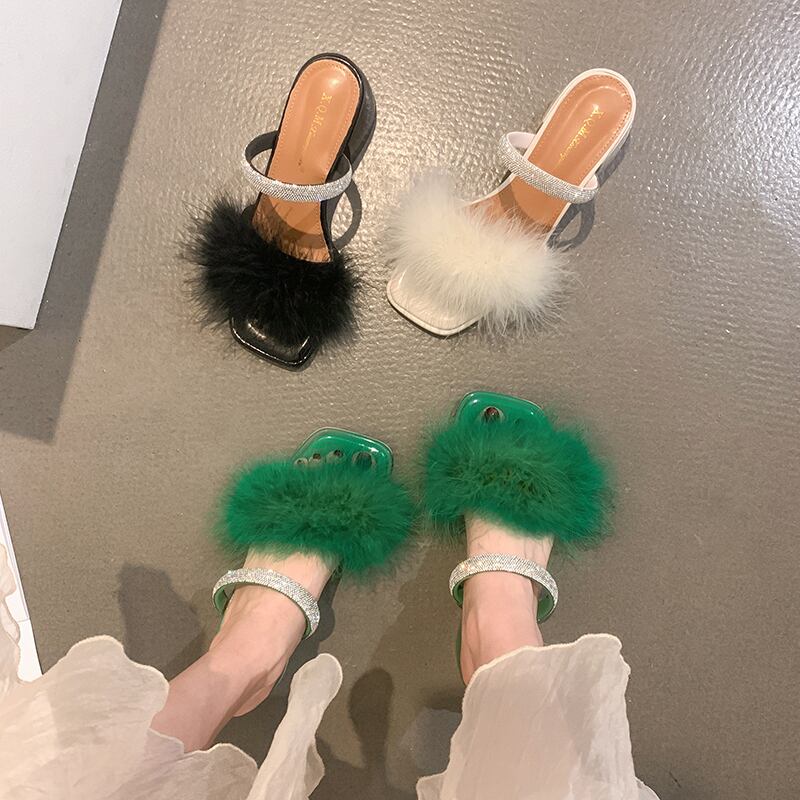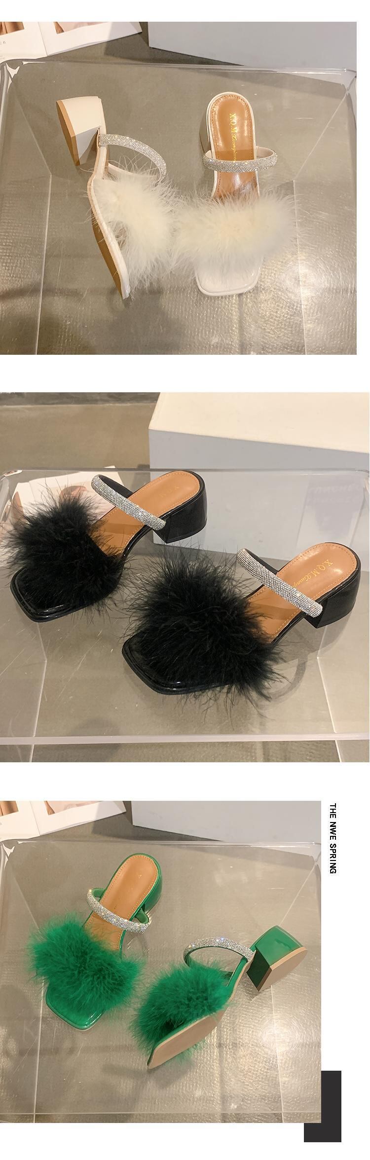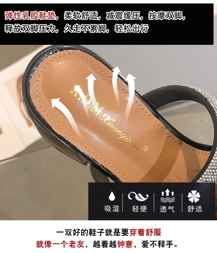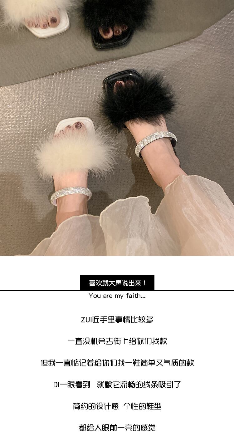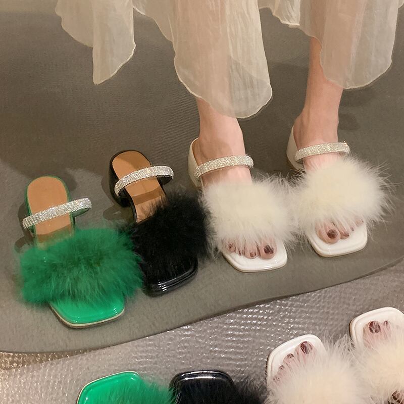 ヘアリースリッパ女性の2022年夏の新しいスタイルのラインストーンの厚いかかと滑り止めのファッションオールマッチの妖精スタイルのビーチサンダル ヒール 靴 シューズ ミュール サマー 夏物 jxjxf90509195241