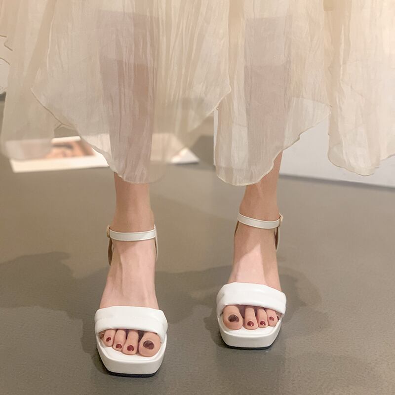 サンダルレディーススカート2022夏の新しい妖精スタイルのファッションオールマッチ厚手のヒール滑り止め一言ハイヒールの靴 シューズ サマー 夏物 スリッポン jxjxf32875439762