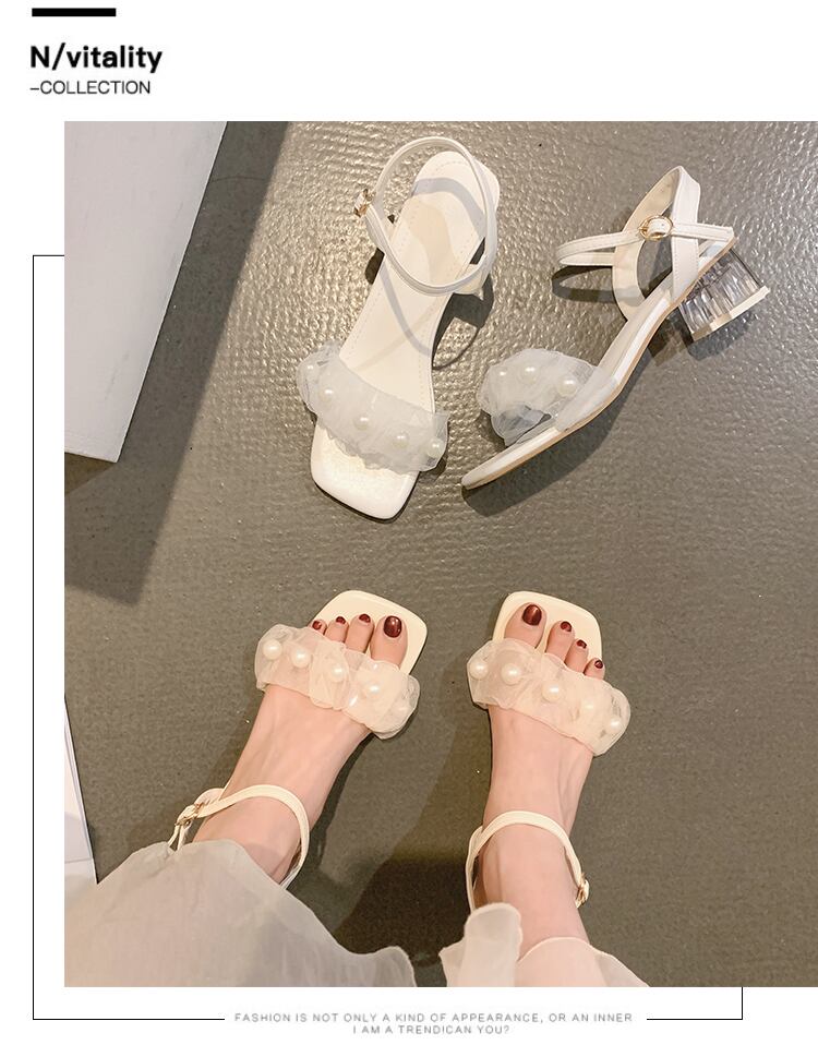 フェアリースタイルのサンダルレディース2022年夏の新しいスーパーファッションオールマッチパールシックヒール滑り止め一言ローマの靴 シューズ サマー 夏物 スリッポン 真珠 jxjxf26119008597