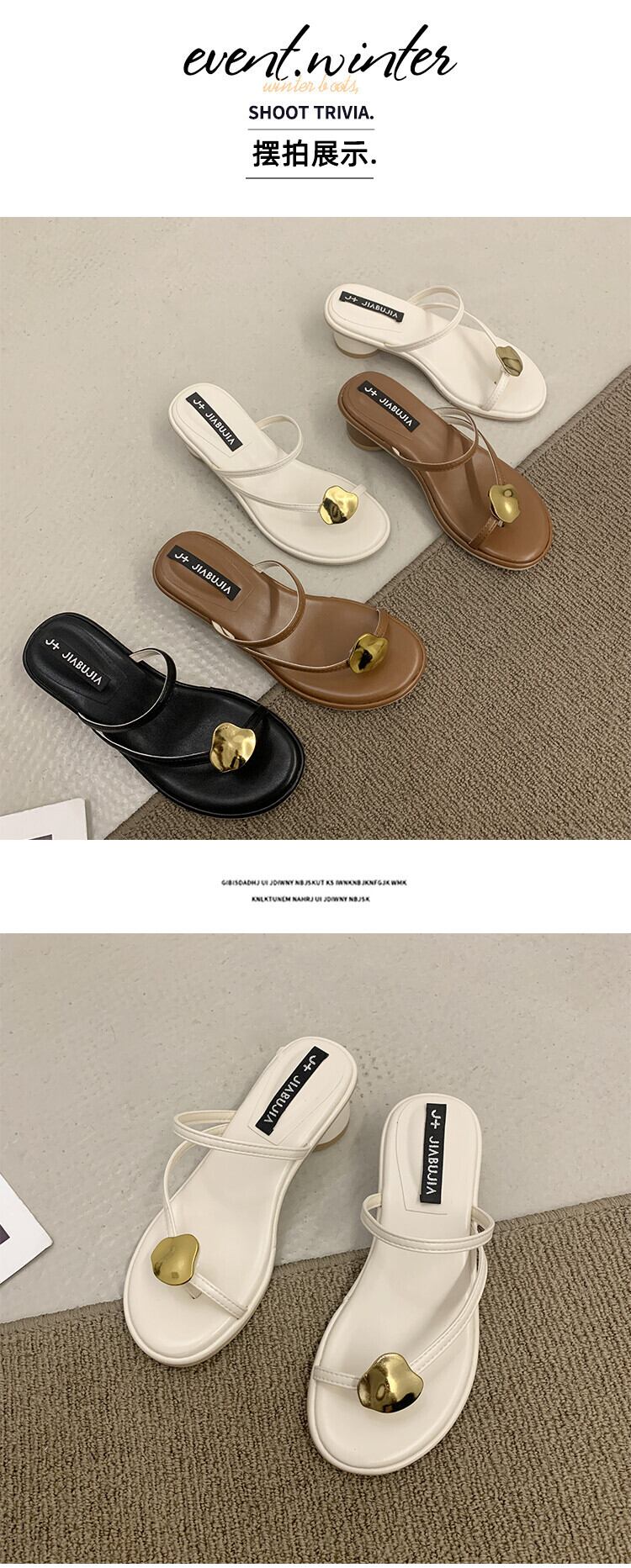 セットトゥサンダルレディースサマーアウターウェアシックヒールブラウン2022ニューメタルノンスリップファッションレトロビーチスリッパタイド ミュール 靴 シューズ 夏物 jxjxf78104051200